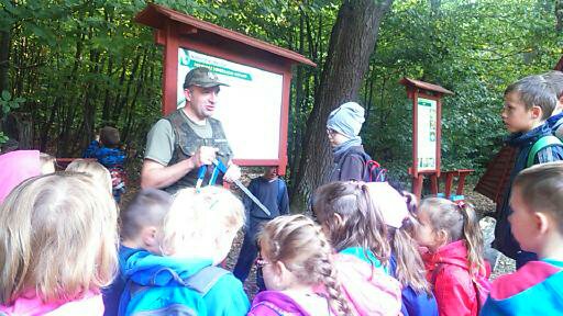 W dniu 24.09.2015r. uczniowie klas IIa i IIb wybrali się wraz z opiekunami na pierwszą, w tym roku szkolnym, wycieczkę. Miała ona nie tylko charakter integracyjny, ale także edukacyjny. Las, świeże powietrze, ważne szlaki, ciekawa historia – to wszystko zaoferował nam las Gostecki. To tutaj uczniowie, wędrując po lesie, mogli posłuchać historii o św. Mikołaju, kult św. Huberta, poznać tutejszą roślinność oraz posłuchać prelekcji o zwierzętach zamieszkujących te tereny, ich zwyczajach i zagrożeniach z ich strony dla ludzi. To wszystko za sprawą Pana Jurka Chmiela łowczego Koła „Knieja”. W podziękowaniu p. Jurek dostał od dzieci ilustrację zwierząt zamieszkujących lasy, za co on się odwdzięczył skromnymi podarkami. Z lasu gosteckiego pojechaliśmy do malowniczo położonej stadniny koni huculskich – Kochul. Dzieci z zadowoleniem i dużym zaciekawieniem słuchały opowiadania właściciela stadniny na temat sposobu opiekowania się końmi: karmienia ich, czyszczenia, ujeżdżania. Poznały rodzaje koni i nazwy maści. Po obejrzeniu koni, wyczyszczeniu ich, nastąpił najbardziej oczekiwany przez dzieci moment – przejażdżka pod okiem instruktora. Wszystkie dzieci z ochotą i odwagą siadały na koniu i próbowały jazdy konnej. Było również dużo zabawy na świeżym powietrzu. Pobyt w stadninie koni zakończył się wspólnym pieczeniem kiełbasek i słodkim co nie co.