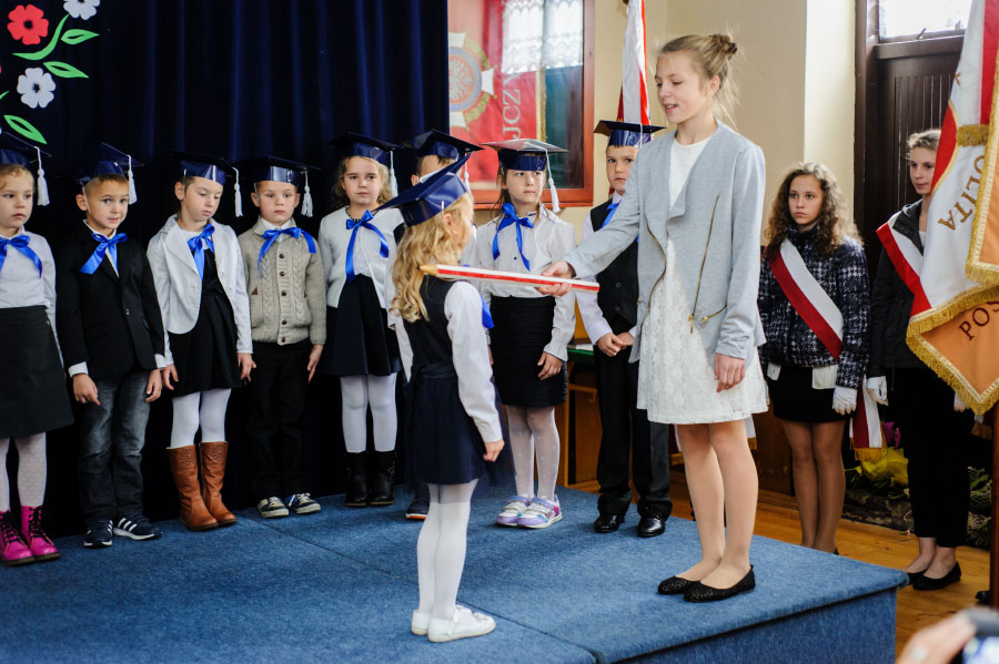 Dnia 12.10.2015, odświętnie ubrani i w podniosłych nastrojach, przyjęliśmy w nasze szeregi uczniowskie klasy I Szkoły Podstawowej i Publicznego Gimnazjum. Podekscytowane pierwszaki złożyły przyrzeczenie w obecności Dyrekcji, nauczycieli, Rady Rodziców oraz uczniów. Tą podniosłą uroczystość uświetniły występy artystyczne naszych kolegów i koleżanek, jak również przemówienie Pana Dyrektora Prowadzącego, Michała Znamirowskiego.