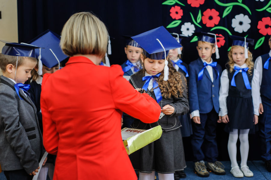 Dnia 12.10.2015, odświętnie ubrani i w podniosłych nastrojach, przyjęliśmy w nasze szeregi uczniowskie klasy I Szkoły Podstawowej i Publicznego Gimnazjum. Podekscytowane pierwszaki złożyły przyrzeczenie w obecności Dyrekcji, nauczycieli, Rady Rodziców oraz uczniów. Tą podniosłą uroczystość uświetniły występy artystyczne naszych kolegów i koleżanek, jak również przemówienie Pana Dyrektora Prowadzącego, Michała Znamirowskiego.