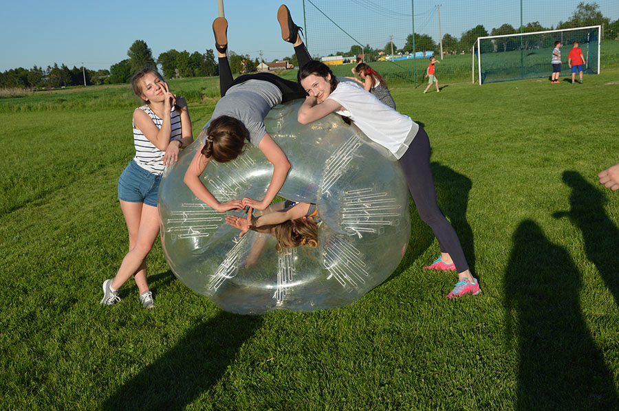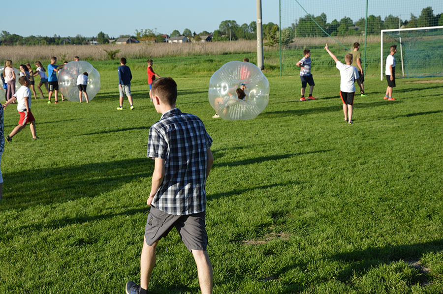 Dnia 28.05.2017 roku na terenie naszej szkoły odbył się 10. Jubileuszowy Piknik Rodzinny. Tym razem zorganizowaliśmy sportowy piknik w stylu rodzinnego festynu. Odbywały się różne konkurencje, w których brali udział uczniowie wraz z rodzicami, a także absolwenci i goście. Był to na przykład wyścig w workach, sztafeta z pokrywkami na głowie, bieg w parach ze związanymi nogami, toczenie opony do mety i z powrotem, rzut woreczkiem do celu i wiele innych. Zabawom tym towarzyszyła radość i mnóstwo wygłupów i śmiechu. Wesoło było również na trawiastym boisku, gdzie można było pograć w piłkę w ogromnych kulach crash ball albo po prostu się w nich poturlać. Maluchy szalały w dmuchanym zamku i suchym basenie z kolorowymi kulkami.