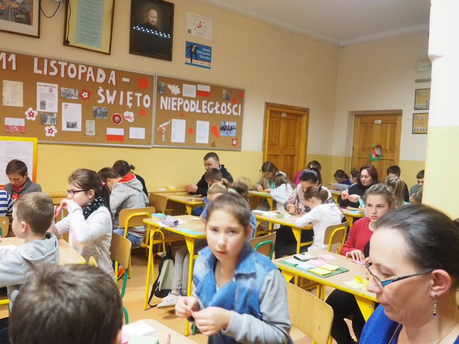 09.11.2016r. uczniowie klas IV-VI wraz z całymi rodzinami uczestniczyli w Rodzinnych Warsztatach Origami przeprowadzonych w ramach realizowanego przez szkołę projektu: „Matematyka jest miarą wszystkiego”- programu ”mPotęga”, który dofinansowała Fundacja mBanku.