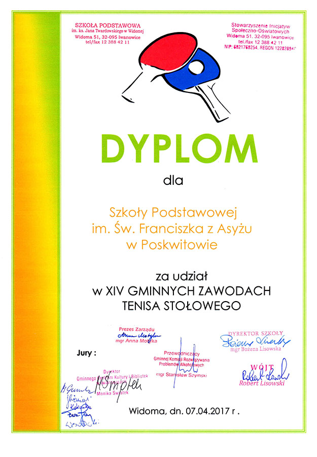 W dniu 10.04.2014r. uczniowie Szkoły Podstawowej wzięli udział w XIV Gminnych Zawodach Tenisa Stołowego, które odbyły się na sali gimnastycznej w Widomej.
