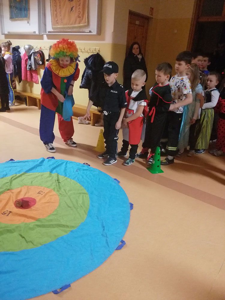 Na balu mogliśmy zobaczyć wiele ciekawych postaci z bajek oraz kreskówek. Stroje uczniów zachwycały. Dzieci bawiły się razem z trzema kolorowymi Klaunami, które rozbawiały imprezę. Po wspólnych tańcach i poczęstunku dzieci zadowolone wróciły do domów.