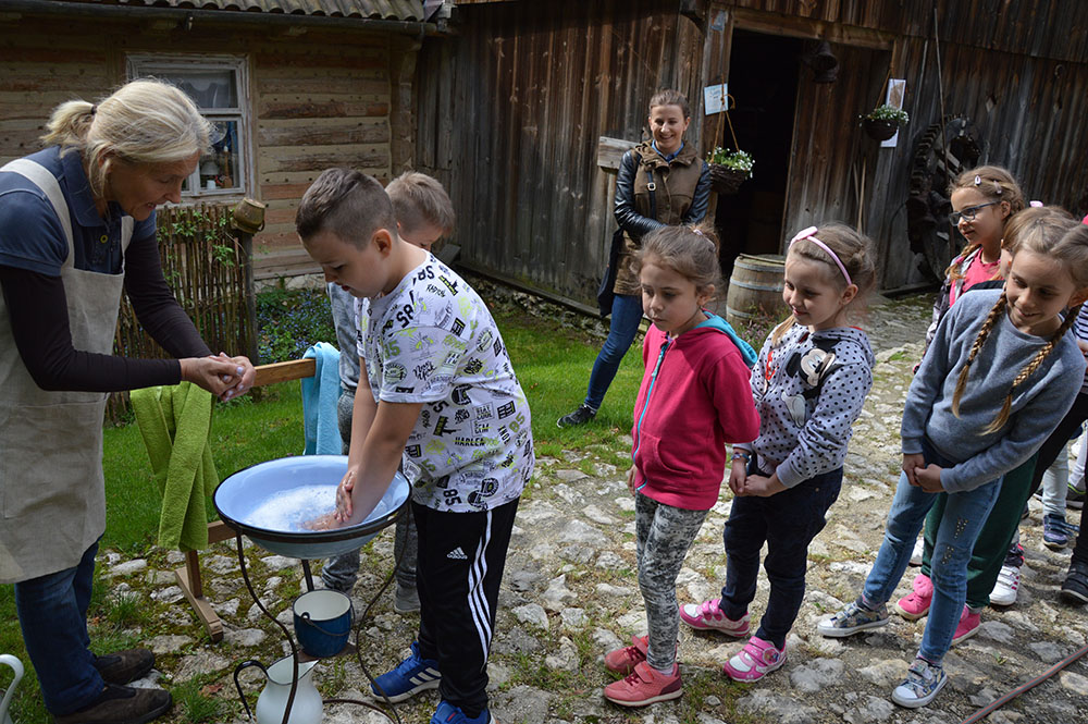 Dnia 26 kwietnia 2018 roku uczniowie klas 0-II wybrali się na wycieczkę do Osady Młynarskiej „Boroniówka” w Grodzisku na warsztaty pod nazwą „Od ziarenka do bochenka”. Po dotarciu na miejsce pierwszym zadaniem uczniów było umycie rąk w specjalnej polowej umywalce, co było dla nich dużym zaskoczeniem. Następnie każdy dostał fartuszek, aby w czasie prac nie pobrudzić sobie ubrań. Zadaniem dzieci było wyrobienie samodzielnie ciasta, rozwałkowanie go, a następnie wykrojenie różnymi foremkami ciasteczek. Po zakończonej pracy i ponownym umyciu rąk, przewodnik zabrał dzieci na spacer po osadzie i wytłumaczył, a także pokazał jak działa młyn wodny, który produkuje mąkę. W tym czasie piekły się ciasteczka, które na koniec dzieci dostały i mogły je zjeść. Zapach pieczonych ciasteczek czuć było wszędzie, a ich smak – niebo w gębie wszystkie dzieci wróciły zadowolone i bogatsze o nową wiedzę.