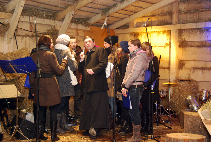 Jasełka uczniowie przygotowali pod kierunkiem p. Renaty Jagiełki, Chórem „Primavera” dyrygowała Urszula Kubik, a opracowania muzyczne kolęd przygotował ks. Dominik Koston; on też był realizatorem światła i dźwięku.