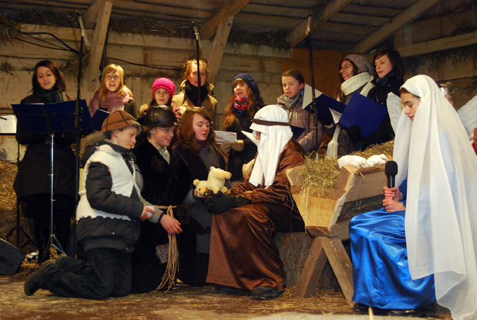 Już po raz czwarty w drugi dzień Świąt Bożego Narodzenia uczniowie ze szkoły w Poskwitowie brali udział w „Żywej Szopce” organizowanej przez Braci Franciszkanów w Krakowie. Najpierw zaprezentowali przygotowane Jasełka a później Chór Primavera kolędował wspólnie ze zgromadzonymi ludźmi wokół Żywej Szopki. Dla naszych uczniów występ ten jest niewątpliwie wielkim przeżyciem i wyróżnieniem. Prace nad przygotowaniem Jasełek i koncertu kolęd trwały długo, ale też i odpowiedzialność ciążąca na małych i młodych artystach występujących przed krakowską publicznością była ogromna.