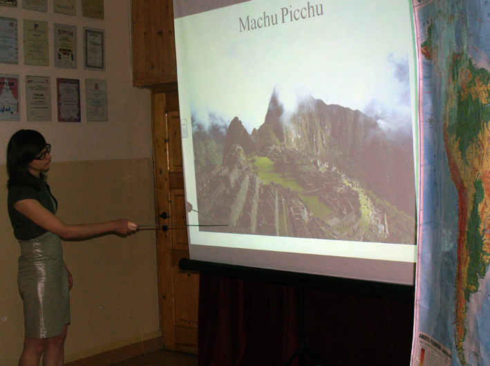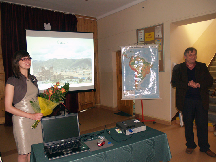 Jednakże nam opowiadała o swojej ostatniej podróży po Ameryce Południowej. Barwna, niezwykle ciekawa opowieść pani Sylwii przykuwała uwagę naszych uczniów przez ponad godzinę. Padały też dociekliwe pytania nie tylko ze strony uczniów, ale i nauczycieli.