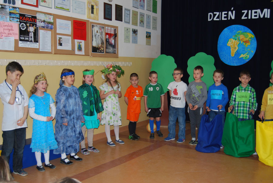 25 kwietnia 2016 r. uczniowie klasy I zaprezentowali swoim kolegom przedstawienie pt.: „Jak rozweselić Ziemię?” Dzieci mogły się z niego dowiedzieć, co zatruwa i niszczy naszą planetę oraz jak należy segregować odpady.