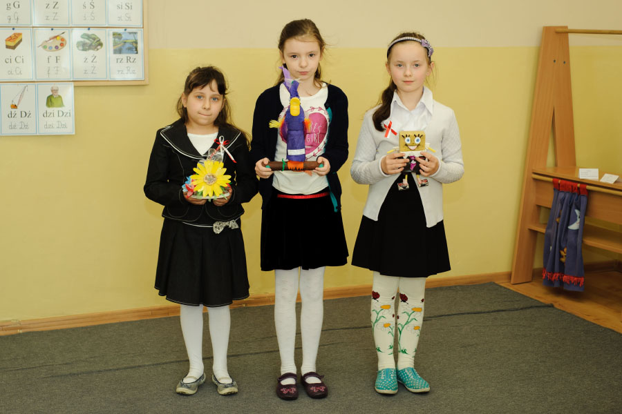 W tym dniu zostały też wręczone nagrody w Rodzinnym Konkursie „Bajkowa postać”. Uczniowie klas I-III wraz ze swoimi rodzinami przygotowywali postać z surowców wtórnych. Mogli wykorzystać opakowania po różnych produktach, makulaturę, zużyte materiały itp. Komisja konkursowa była oczarowana bajkowymi bohaterami, którzy zachwycali swoim ekologicznym pięknem i pomysłowością wykonania.