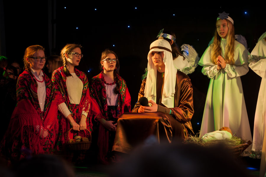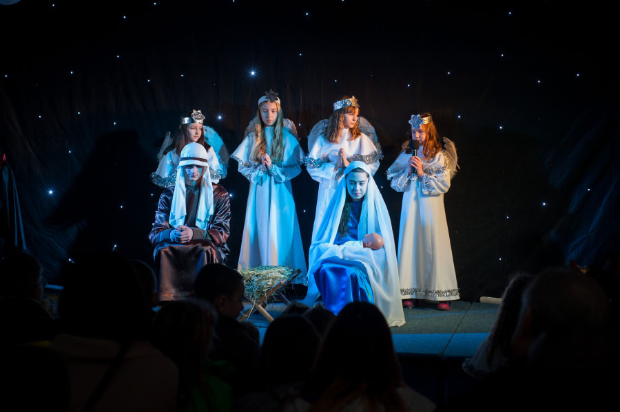 Tymi słowami Pani dyrektor Anna Rerak rozpoczęła Szkolną Wigilię. Wzięli w niej udział zaproszeni goście, przedstawiciele rady rodziców, grono pedagogiczne, pracownicy szkoły podstawowej i gimnazjum oraz uczniowie obydwu szkół. Jak co roku w programie uroczystości obejrzeliśmy bardzo ciekawe Jasełka w wykonaniu uczniów szkoły podstawowej i gimnazjum oraz dziewcząt z chóru Primavera. Jasełka przygotowała pani Renata Jagiełka przy współpracy pani Urszuli Kubik. Przewodniczący Samorządu Uczniowskiego Szymon Kmita złożył wszystkim zebranym świąteczne życzenia, a uczniowie wręczyli świąteczne bombki. Pan Dyrektor Prowadzący Michał Znamirowski również życzył wszystkim spokojnych świąt i wszelkiego dobra. Został rozstrzygnięty konkurs na rodzinną szopkę bożonarodzeniową, w którym nagrody ufundowała Rada Rodziców, za co serdecznie dziękujemy. Wystawę pięknych i bardzo oryginalnych szopek wszyscy mogli obejrzeć w budynku szkoły. Śpiewaliśmy wspólnie kolędy pod przewodnictwem Ojca Piotra Dąbka. Mogliśmy również wysłuchać pięknych modlitw afrykańskich wygłoszonych przez brata Stevensona. Część oficjalna zakończyła się modlitwą i błogosławieństwem którą poprowadził Vice Prowincjał Ojciec Piotr Stanisławczyk. Następnie przeszliśmy do budynku szkoły, gdzie łamaliśmy się opłatkiem i składaliśmy sobie świąteczne życzenia. Na zakończenie goście, nauczyciele i uczniowie zastali poczęstowani przygotowaną przez klasę III G pod kierunkiem pani Urszuli Wykurz wigilijną rybą, barszczem i ciastem. Dzięki zaangażowaniu całej społeczności szkolnej uroczystość ta przebiegła w miłej świątecznej atmosferze. Szczególne słowa podziękowania kierujemy do pana Marka Piekary za podarowaną rybę. Dziękujemy także ks. Dominikowi Kostonowi za oprawę świetlną, Państwu Kralkom za podarowaną choinkę. Pełni radości i nadziei na zbliżające się Boże Narodzenie i Nowy Rok udaliśmy się po zakończeniu spotkania do domów.
