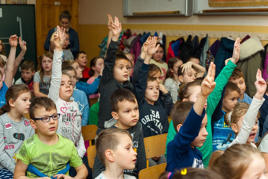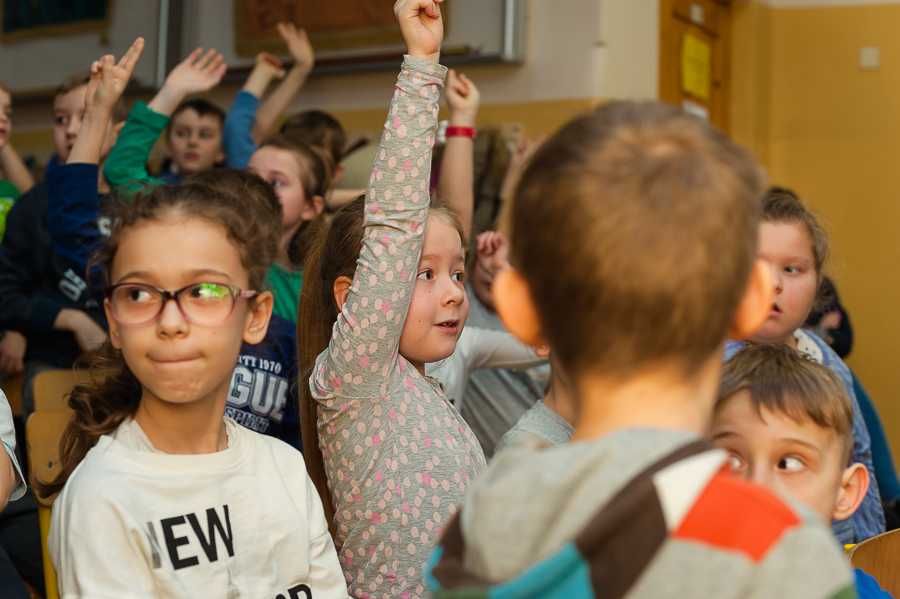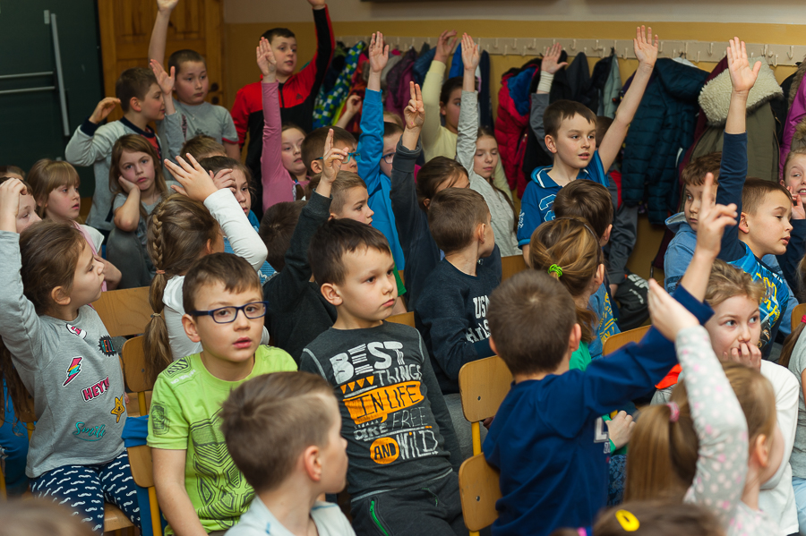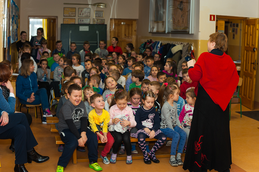 Dnia 22 lutego odwiedziła naszą szkołę autorka ponad stu książeczek dla dzieci pani Ewa Stadtmüller. Nie była to jej pierwsza wizyta. Jest naszym częstym gościem i jesteśmy z tego bardzo zadowoleni ponieważ dzieci uwielbiają słuchać jej opowiadań. Pani Ewa przywiozła ze sobą wiele kukiełek i pacynek związanych z bohaterami krakowskich legend. Postanowiła zorganizować konkurs. Uczniowie zostali podzieleni na dwie grupy: księżniczki - (dziewczynki) i smoki (chłopcy). Zadaniem uczniów było odpowiadanie na pytania dotyczące Krakowa, jego historii oraz legend. Uczniowie byli bardzo aktywni i znali odpowiedź na każde pytanie. Jesteśmy dumni, że mają tak dużą wiedzę i chętnie czytają książki z naszej biblioteki szkolnej.
