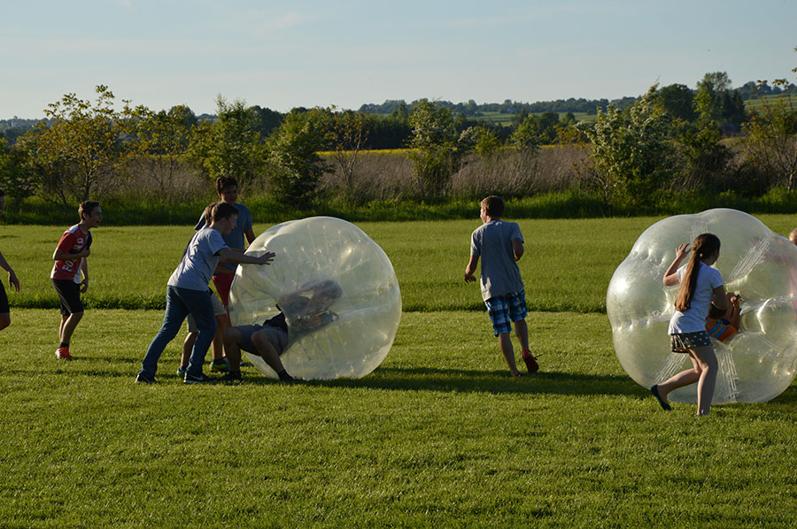 Dnia 28.05.2017 roku na terenie naszej szkoły odbył się 10. Jubileuszowy Piknik Rodzinny. Tym razem zorganizowaliśmy sportowy piknik w stylu rodzinnego festynu. Odbywały się różne konkurencje, w których brali udział uczniowie wraz z rodzicami, a także absolwenci i goście. Był to na przykład wyścig w workach, sztafeta z pokrywkami na głowie, bieg w parach ze związanymi nogami, toczenie opony do mety i z powrotem, rzut woreczkiem do celu i wiele innych. Zabawom tym towarzyszyła radość i mnóstwo wygłupów i śmiechu. Wesoło było również na trawiastym boisku, gdzie można było pograć w piłkę w ogromnych kulach crash ball albo po prostu się w nich poturlać. Maluchy szalały w dmuchanym zamku i suchym basenie z kolorowymi kulkami.