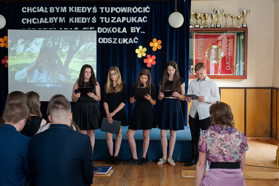 Uczniowie kl. III żegnają naszą szkołę. Przed Wami nowe wyzwania i obowiązki. Życzę Wam byście dobrze poradzili sobie w wybranych szkołach. Pamiętajcie o tym, że warto być dobrym, otwartym na innych, tolerancyjnym i życzliwym człowiekiem. W myśl zasady, że dobro, którym obdarzacie innych wraca do nas podwójnie.