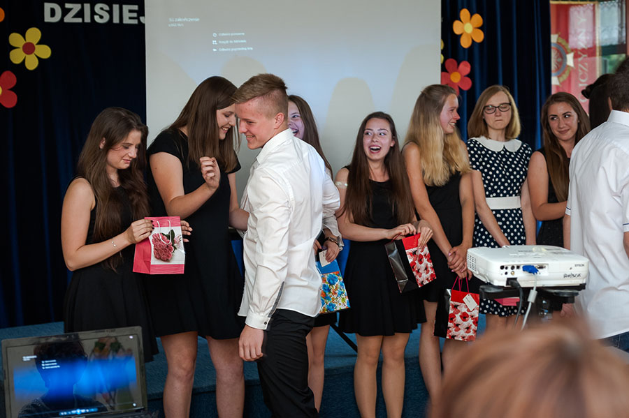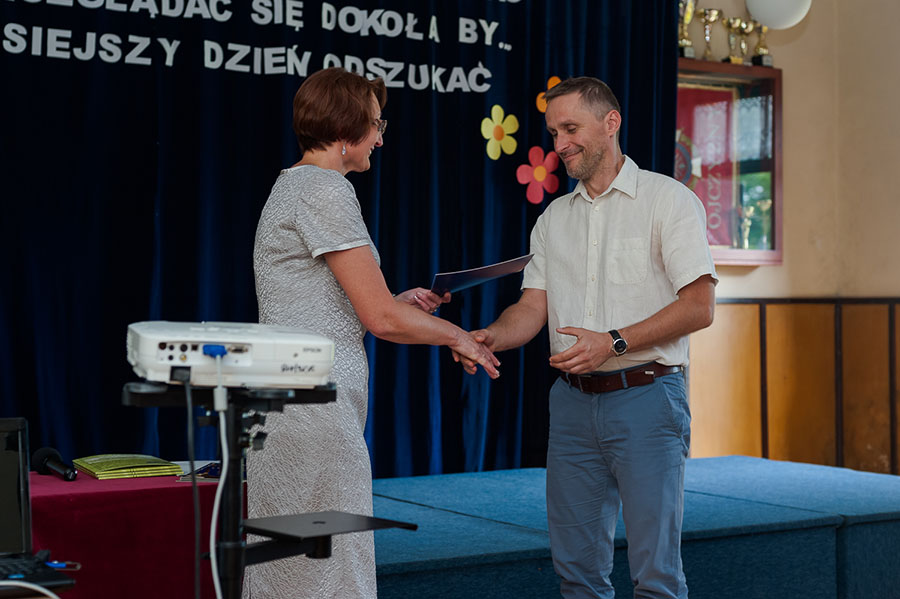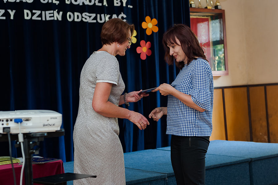 Serdeczne podziękowania kieruję do grona nauczycielskiego za bardzo dobrą pracę, czego dowodem są m. in. wyniki na egzaminie gimnazjalnym oraz wysokie wyniki nauczania, dziękuję za zaangażowanie, za czas poświęcony uczniom, za podejmowanie wielu cennych inicjatyw na rzecz wszechstronnego rozwoju uczniów, dzięki czemu szkoła cały czas się rozwija. Dziękuję również paniom woźnym, p. sekretarce, p. konserwatorom za dobrą pracę.