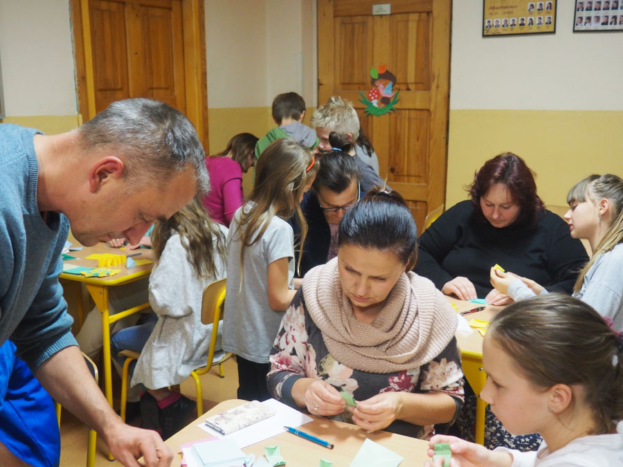 09.11.2016r. uczniowie klas IV-VI wraz z całymi rodzinami uczestniczyli w Rodzinnych Warsztatach Origami przeprowadzonych w ramach realizowanego przez szkołę projektu: „Matematyka jest miarą wszystkiego”- programu ”mPotęga”, który dofinansowała Fundacja mBanku.