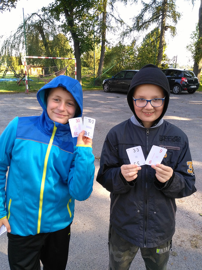 z tabliczką mnożenia. Drużynowo rozwiązywali łamigłówki, zmagali się z grami zarówno samodzielnie wykonanymi na zajęciach jak również z wykorzystanie kart A. Grabowskiego m.in. Sokole oko, Szeryf, Kółko Krzyżyk, a także z wykorzystaniem tablicy interaktywnej. Odbyły się również konkurencje sportowe np. Smerfy, Rodzinka, Królowa ping ponga.