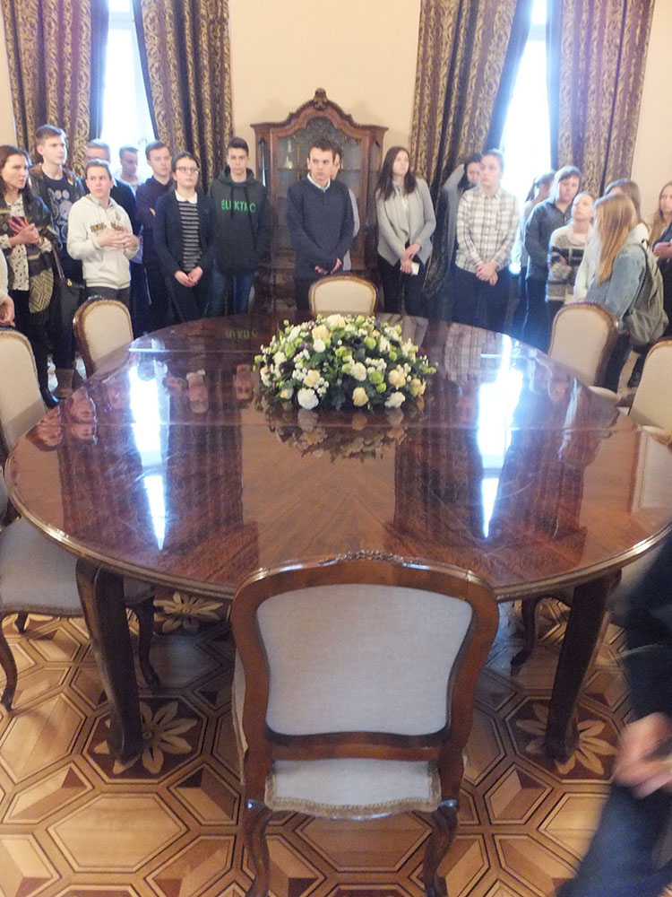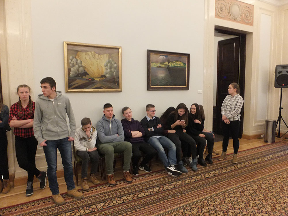 Podczas zwiedzania Sejmu uczniowie mieli możliwość wejść na salę obrad, dowiedzieli się jak wygląda praca posłów, w jaki sposób odbywają się głosowania, gdzie zasiadają poszczególni posłowie oraz Pan Prezydent, gdy uczestniczy w posiedzeniu Sejmu. W Pałacu Prezydenckim pani przewodnik w bardzo ciekawy sposób przedstawiła uczniom historię budynku. Mieli oni możliwość zobaczyć wszystkie sale, w których odbywają się spotkania najważniejszych osób w państwie. Podejmowane są ważne decyzje dotyczące naszego kraju oraz przyjmowani goście z zagranicy. Było to dla wszystkich uczestników wyjazdu niezwykłe doświadczenie, być osobiście w tak ważnych miejscach, które znamy z telewizji. Na zakończenie dnia spędzanego w stolicy uczniowie wraz z opiekunami spotkali się w Ministerstwie Infrastruktury z panem Ministrem Andrzejem Adamczykiem. Było to bardzo miłe i sympatyczne spotkanie. Pan minister podkreślił, że dobrze zna Gminę Iwanowice i cieszy, że może nas gościć. Po dniu pełnym wielu ciekawych doznań wszyscy zostali w ministerstwie poczęstowani pysznym obiadem i słodyczami.
