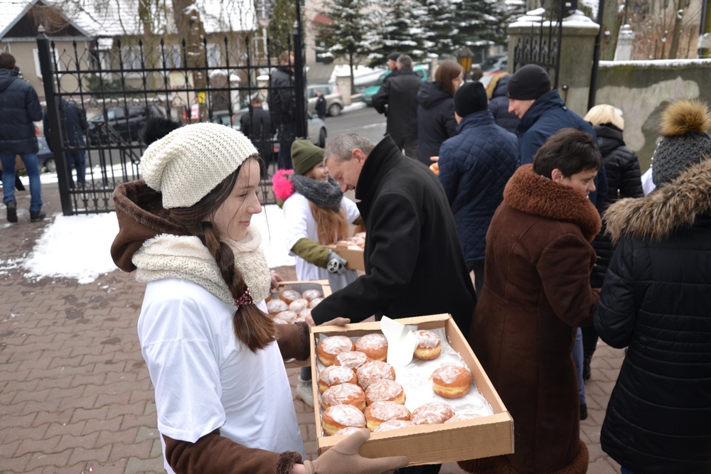 11 lutego – w niedzielę poprzedzającą Środę Popielcową przed naszym kościołem wolontariusze Szkolnego Koła Caritas częstowali wiernych pączkami. Akcja ta była zorganizowana po raz ósmy. Pączki zostały ufundowane przez naszego parafianina. Pyszne pączki niech nam osłodzą czas nadchodzącego postu.
