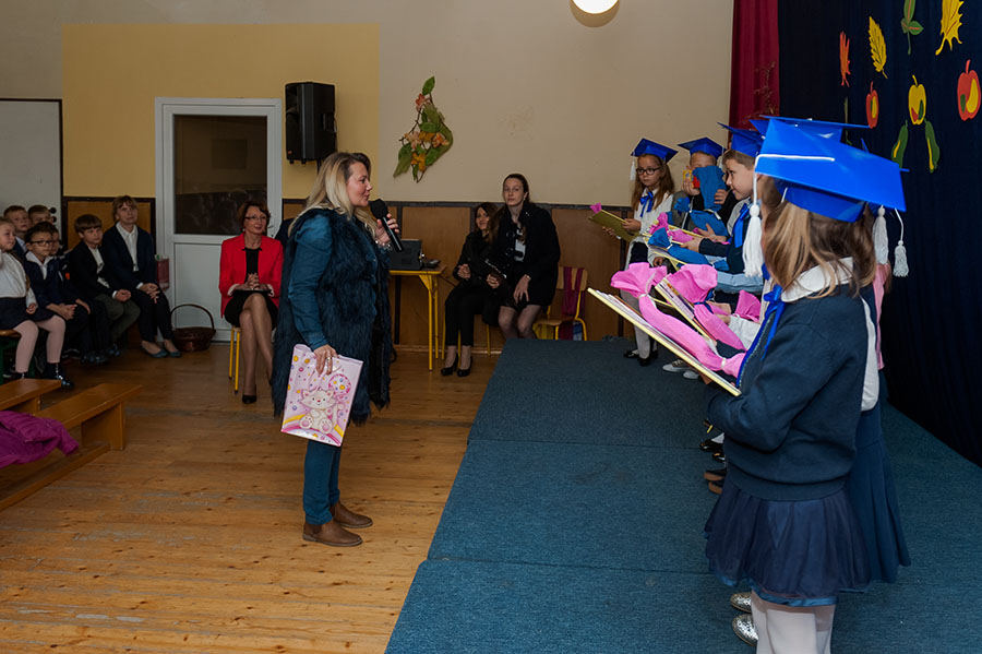 6 października 2017 r. w naszej szkole odbyło się Ślubowanie uczniów klasy I. Podczas uroczystego apelu dzieciom towarzyszyli rodzice, Dyrekcja Szkoły, Grono Pedagogiczne oraz koledzy i koleżanki z klas starszych. Uczniowie długo przygotowywali się do wydarzenia pod troskliwą opieką wychowawczyni pani Justyny Musiałek. Po wprowadzeniu sztandaru szkoły podstawowej i złożeniu pani dyrektor meldunków przez uczniów, rozpoczęła się uroczystość ślubowania. Na wstępie pierwszaki zaprezentowały inscenizację w trakcie, której zostali odpytani przez samego „Króla i Królową”. Dzieci wykazały się dużą wiedzą na temat obowiązków szkolnych i mogły przystąpić do złożenia przysięgi. Po wypowiedzeniu słów roty przewodnicząca samorządu uczniowskiego Weronika Płatek pasowała swoich młodszych kolegów na uczniów klasy pierwszej. Każdy świeżo pasowany uczeń, otrzymał od pani Dyrektor legitymację szkolną, pamiątkowy dyplom i teczkę oraz wpisał się do księgi pamiątkowej. Na zakończenie tego szczególnego wydarzenia do życzeń dołączyli się koledzy z klasy II z wychowawczynią panią Joanna Kowalską, miło witając pierwszaków w progach szkoły. Również rodzice wręczyli dzieciom wspaniałe prezenty i przygotowali dla nich oraz dla grona pedagogicznego słodki poczęstunek. Uroczystość na pewno na długo pozostanie w pamięci pierwszoklasistów oraz ich rodziców.