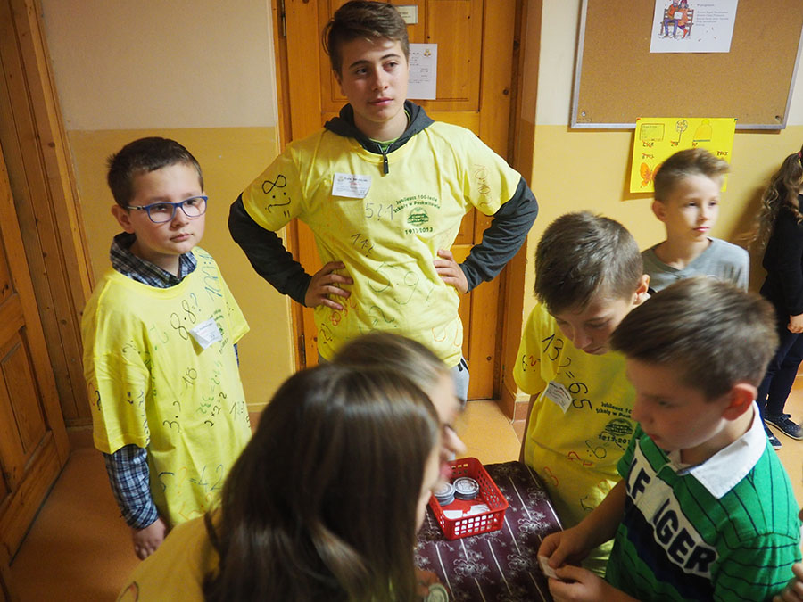 Osoby te jako egzaminatorzy, w piątek 29 września wchodzili w skład Komisji Egzaminacyjnej. Odpytywali z tabliczki mnożenia swoich kolegów, koleżanki, nauczycieli, pracowników szkoły, rodziców oraz opiekunów. Każdy uczestnik zabawy losował jeden los, jeżeli odpowiedział poprawnie na 5 pytań z losu otrzymał odznakę Eksperta Tabliczki Mnożenia oraz cukierek.