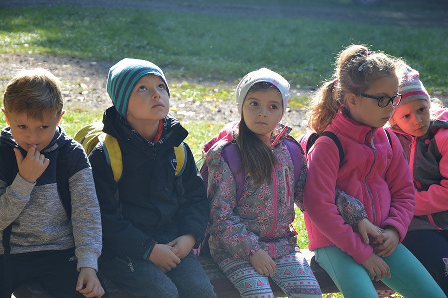 28 września 2017 r. dzieci z oddziału przedszkolnego wraz z klasą I wybrały się na wycieczkę do lasu, który należy do leśnictwa Goszcza. Po przyjedzie na miejsce wszyscy usiedli na ławkach, gdyż lada moment miał przyjechać Pan Leśniczy, który opowiadał nam między innymi o tym na czym polega jego praca. Pokazał różne przyrządy niezbędne w jego pracy, a także kilka zdjęć zwierząt jakie mogą występować w lasach. Następnie wybraliśmy się na krótką wycieczkę po lesie. Dzieci z zaciekawianiem przyglądały się napotkanym grzybom, a Pan Leśniczy wskazywał im te które były jadalne, a które nie. Niestety na swojej drodze nie spotkaliśmy żadnego leśnego zwierzątka. Wszyscy wróciliśmy w rewelacyjnych nastrojach, a także bogatsi o nową wiedzę.