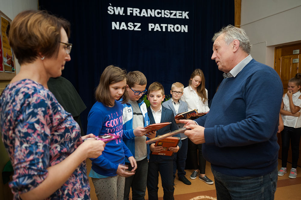 Już po raz szesnasty w naszej szkole odbył się konkurs wiedzy o życiu i działalności Św. Franciszka z Asyżu naszego Patrona. Pierwszy etap konkursu odbył się 4 października i wzięli w nim udział wszyscy uczniowie w dwóch grupach wiekowych: klasy IV – V, oraz klasy VI-VIII i IIIg. Najlepsi uczniowie (3 osobowe drużyny z każdej klasy) zmierzyli się w finale który odbył się 11 października. Okazało się , że nasi uczniowie bardzo dobrze znają swojego patrona.