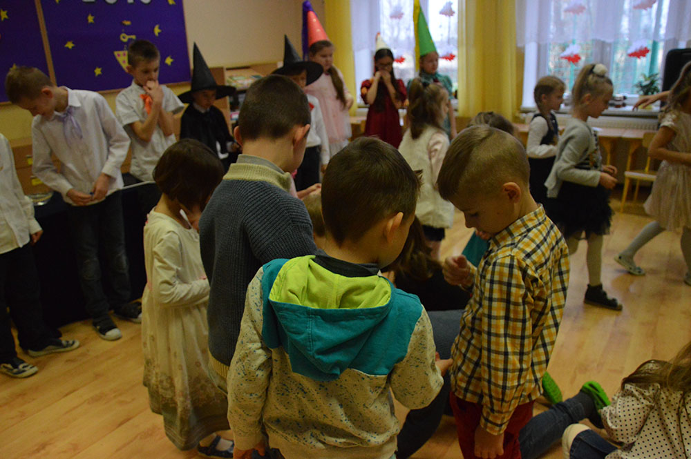 Koniec listopada oznacza tylko jedno – Andrzejki. Tak też było u nas. Jak co roku klasa III Szkoły Podstawowej zorganizowała krótkie przedstawienie wprowadzające w ten magiczny nastrój i wróżby dla swoich młodszych kolegów i koleżanek. W tym roku wróżki i wróżbici przy swoich stanowiskach posługiwali się takimi wróżbami jak: „Zaczarowany grosik”, „Papierowe serca z imionami”, „Magiczne kolory”, „Cukierek z wróżbą”, „Zawód przyszłości – magiczny spiner” i na koniec „Wyścig rzędu butów”. Przepowiadanie przyszłości sprawiło wszystkim wiele radości. Kolejnym punktem programu była zabawa taneczna i słodki poczęstunek. W tym dniu było bardzo czarująco i magicznie.