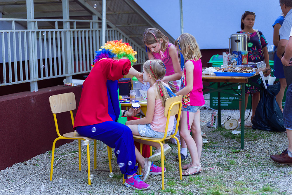 Dla uczniów zostały przygotowane ciekawe atrakcje tj. dmuchany zamek, zabawy z animatorkami, dmuchane piłki – bumper-ball. Nad bezpiecznym korzystaniem z piłek czuwali p. P. Rusin oraz p. M. Sędłak. Dzięki uprzejmości państwa B. i P. Kazana niezwykłą atrakcją tegorocznego pikniku był niewątpliwie specjalny tor rowerowy pamptrack, który wzbudził bardzo duże zainteresowanie. Inne atrakcje to kolorowe balony, prace plastyczne wykonywane pod okiem pani K. Znamirowskiej. Dziewczynki mogły skorzystać z usług salonu fryzjerskiego i wykonać sobie fryzurę z kolorowymi warkoczykami. W role pań fryzjerek wcieliły się p. K. Ziarko, A. Warat, J. Obrzud, A. Silezin. Na pikniku gościliśmy również seniorów z Klubu Seniora „Siwe głowy” z Poskwitowa Nowego. Przedstawiciele klubu prezentowali przedmioty wykonane w ramach zajęć klubu oraz obdarowali uczestników pikniku pysznymi ciastami, za co serdecznie dziękujemy. Odbył się również konkurs dla dzieci i dorosłych na ciekawe przebranie.