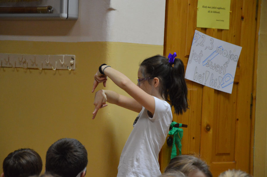 Na początku spotkania uczniowie klasy V: Weronika Płatek, Jakub Wojtal oraz Wiktoria Kolawa zaprezentowali zadania, które zostały zrealizowane podczas trwania projektu.