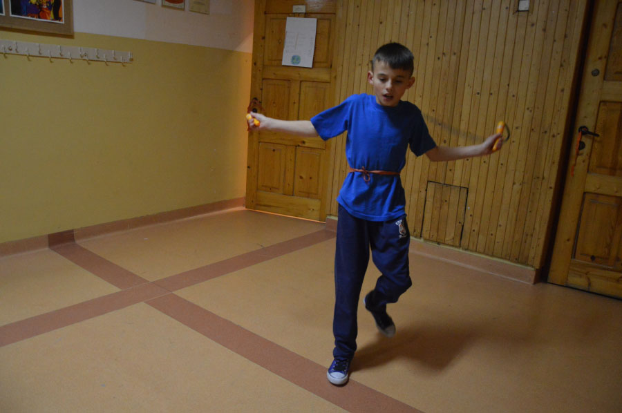 Dzieci startowały w konkurencjach sprawnościowych: skok w dal, bieg slalomem, "brzuszki na czas" oraz uderzenia - tsuki i kopnięcia - maegeri/hiza geri na czas.