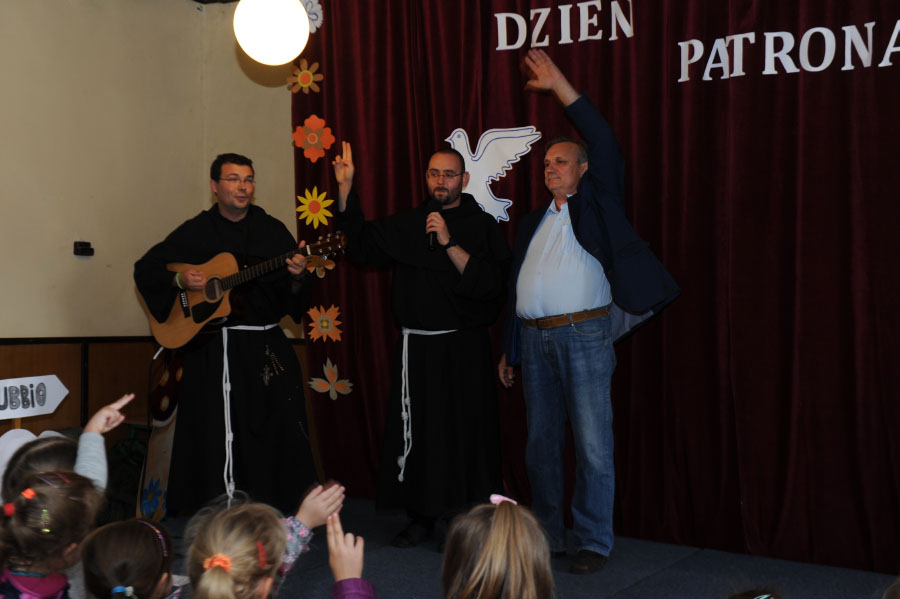 Poza konkursem każda klasa przygotowała wybraną scenkę z życia Św. Franciszka. Konkurs zakończył się w bardzo radosnej atmosferze. Nasi goście Franciszkanie Ojciec Łukasz i Marcin poprowadzili wspólny śpiew połączony z tańcem.