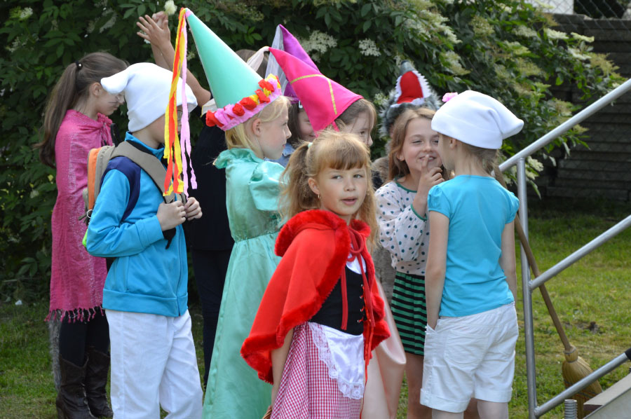 Następnie uczniowie klasy IIa i IIb zabrali wszystkich uczestników pikniku w świat bajek przedstawiając spektakl pt. „Zamieszanie w krainie bajek”. Po tym spektaklu odbyło się rozdanie nagród w konkursie na pracę plastyczną dla przedszkolaków.