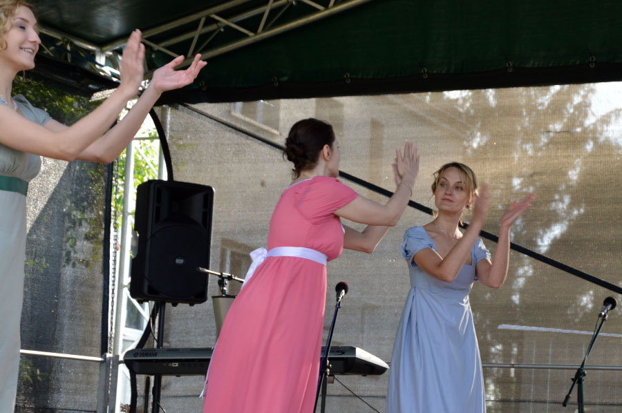 Kolejnym punktem pikniku był pokaz taneczny różnych grup wiekowych. Koleżanki z klas IV-VI przedstawiły układ taneczny we własnej choreografii do muzyki z filmu „Piraci z Karaibów”. Mogę podsumować to jednym zdaniem „Brawo dziewczyny”. Później dzieci z oddziału przedszkolnego zachwyciły wszystkich rodziców i dziadków swoimi wytrenowanymi umiejętnościami tanecznymi. Pokazy taneczne zakończyli artyści krakowskiej szkoły tańca Jane Austen, którzy zostali nagrodzeni gromkimi brawami publiczności.
