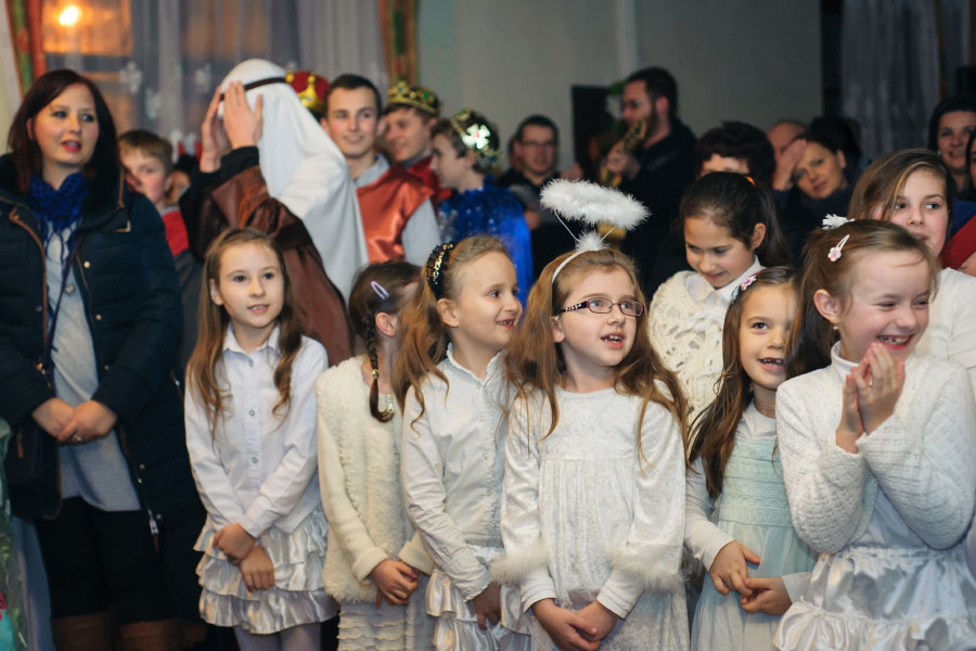 W programie nie mogło zabraknąć przedstawienia Jasełek, kolędy i pastorałki śpiewały chóry Pierwiosnek, Primavera i Primavera Plus. Największą radość wzbudzili bracia franciszkanie, którzy swym występem udowodnili, że kolędy można nie tylko śpiewać ale także interpretować ruchem.