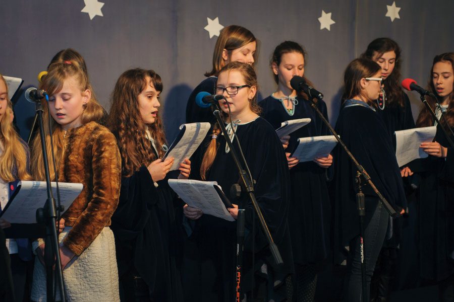 W programie nie mogło zabraknąć przedstawienia Jasełek, kolędy i pastorałki śpiewały chóry Pierwiosnek, Primavera i Primavera Plus. Największą radość wzbudzili bracia franciszkanie, którzy swym występem udowodnili, że kolędy można nie tylko śpiewać ale także interpretować ruchem.