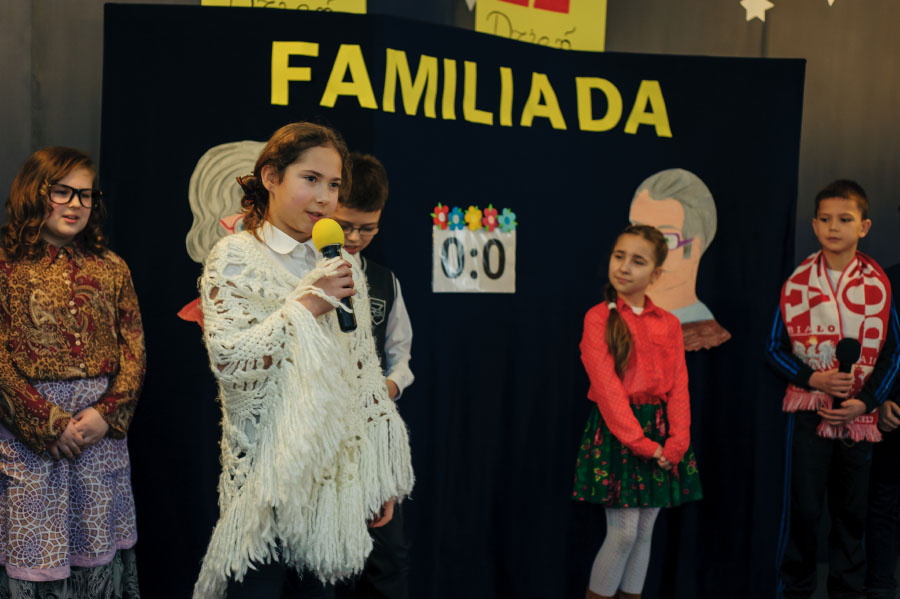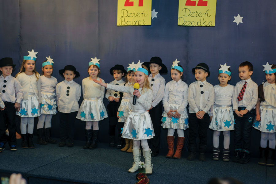 Tradycyjnie, jak co roku, 23 stycznia spotkaliśmy się wspólnie z naszymi kochanymi babciami i dziadkami aby uczcić ich wielkie święto: DZIEŃ BABCI I DZIADKA. Naszych szanownych gości ciepłymi słowami przywitała pani dyrektor Anna Rerak oraz złożyła gorące życzenia. Również głos zabrał pan Dyrektor Prowadzący Michał Znamirowski, który także obdarzył szczerymi życzeniami drogie babcie i drogich dziadków. Następnie dzieci z oddziału przedszkolnego oraz uczniowie z klas I-III zaprezentowali przygotowaną część artystyczną. Były wiersze, które zawierały mnóstwo wzruszających życzeń, inscenizacje, tańce i piosenki. Dzieci z wielkim zaangażowaniem wcielały się w swoje role, aby jak najlepiej wypaść przed swoją kochaną babcią i najlepszym na świece dziadkiem. W ten sposób mogły okazać swoje uczucia jakimi ich darzą. Po występach, uczniowie wręczyli swoim najbliższym pięknie wykonane dyplomiki oraz słodkie niespodzianki. Dzieci czerpały ogromną radość z bycia razem, z tego, że mogły sprawić swoim dziadkom taką niespodziankę i tyle szczęścia. Nasi mili goście również nie kryli wzruszenia, przytulali i całowali swoje drogie małe pociechy. Widać było tą emocjonalną więź jaka ich łączy. Pięknym akcentem i podziękowaniami pani dyrektor zakończyła uroczystość.