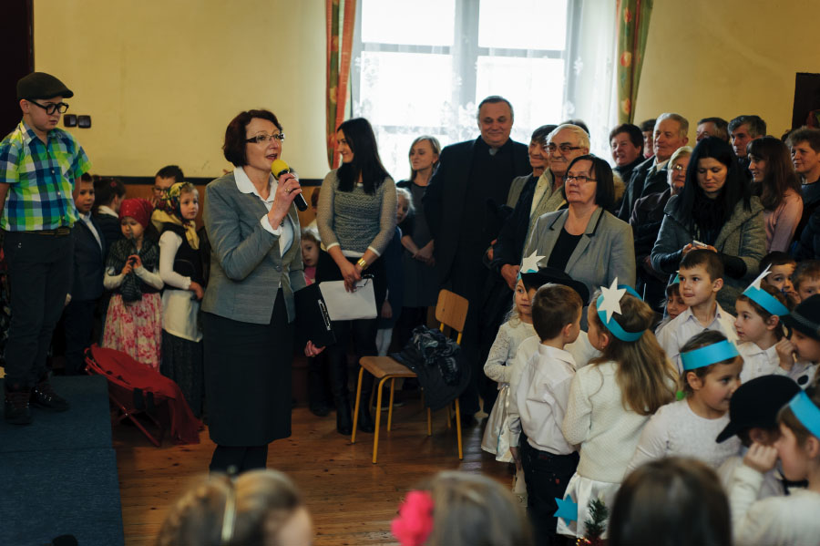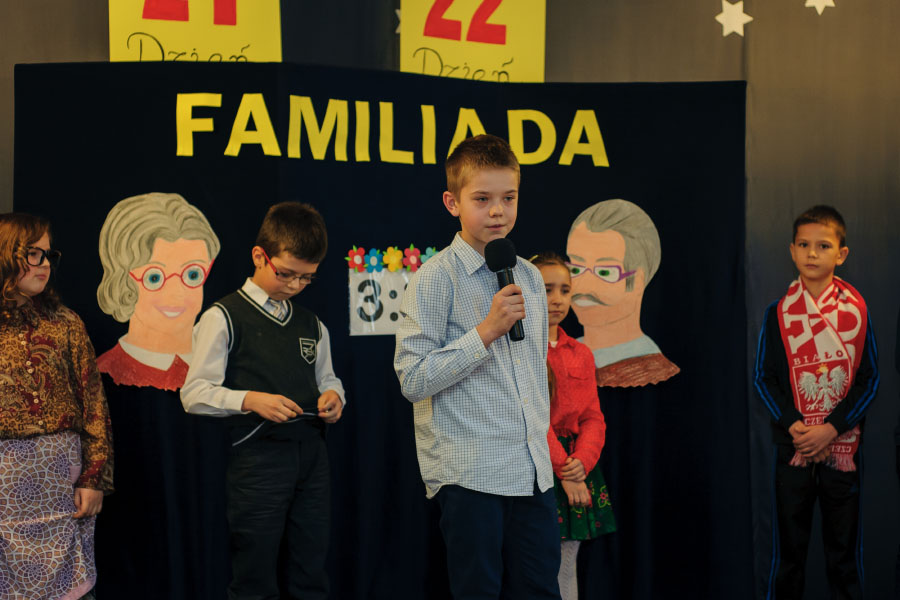 Tradycyjnie, jak co roku, 23 stycznia spotkaliśmy się wspólnie z naszymi kochanymi babciami i dziadkami aby uczcić ich wielkie święto: DZIEŃ BABCI I DZIADKA. Naszych szanownych gości ciepłymi słowami przywitała pani dyrektor Anna Rerak oraz złożyła gorące życzenia. Również głos zabrał pan Dyrektor Prowadzący Michał Znamirowski, który także obdarzył szczerymi życzeniami drogie babcie i drogich dziadków. Następnie dzieci z oddziału przedszkolnego oraz uczniowie z klas I-III zaprezentowali przygotowaną część artystyczną. Były wiersze, które zawierały mnóstwo wzruszających życzeń, inscenizacje, tańce i piosenki. Dzieci z wielkim zaangażowaniem wcielały się w swoje role, aby jak najlepiej wypaść przed swoją kochaną babcią i najlepszym na świece dziadkiem. W ten sposób mogły okazać swoje uczucia jakimi ich darzą. Po występach, uczniowie wręczyli swoim najbliższym pięknie wykonane dyplomiki oraz słodkie niespodzianki. Dzieci czerpały ogromną radość z bycia razem, z tego, że mogły sprawić swoim dziadkom taką niespodziankę i tyle szczęścia. Nasi mili goście również nie kryli wzruszenia, przytulali i całowali swoje drogie małe pociechy. Widać było tą emocjonalną więź jaka ich łączy. Pięknym akcentem i podziękowaniami pani dyrektor zakończyła uroczystość.