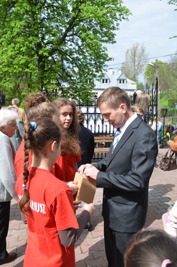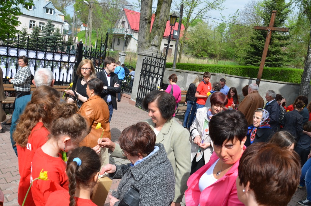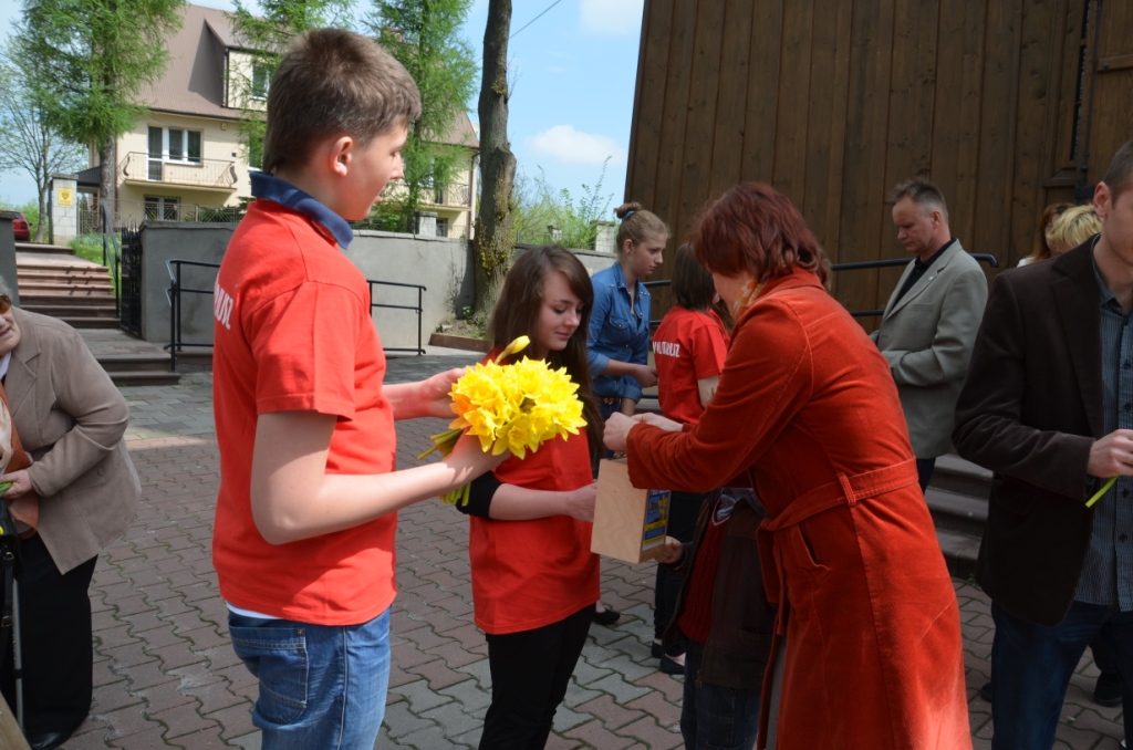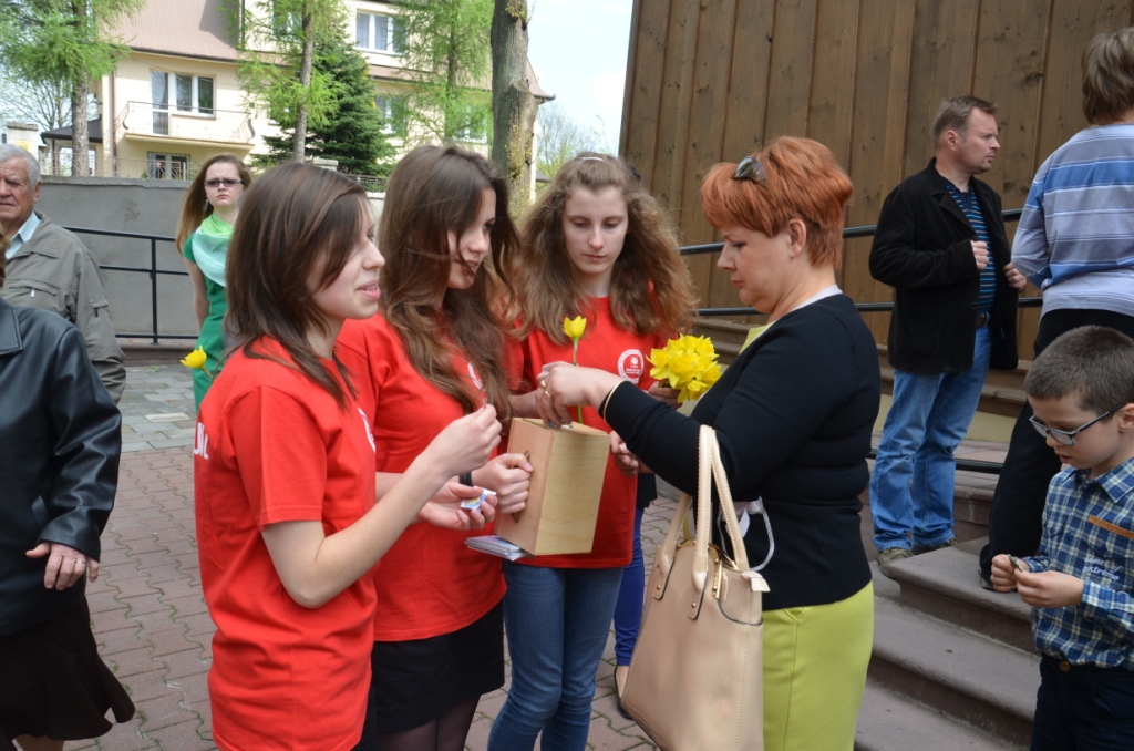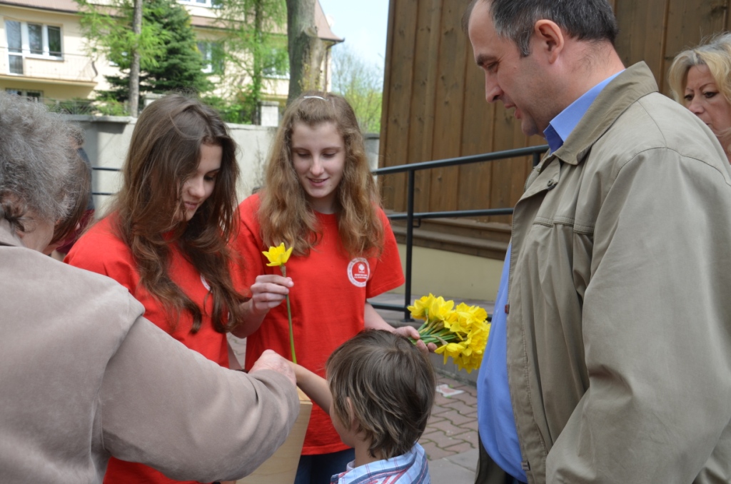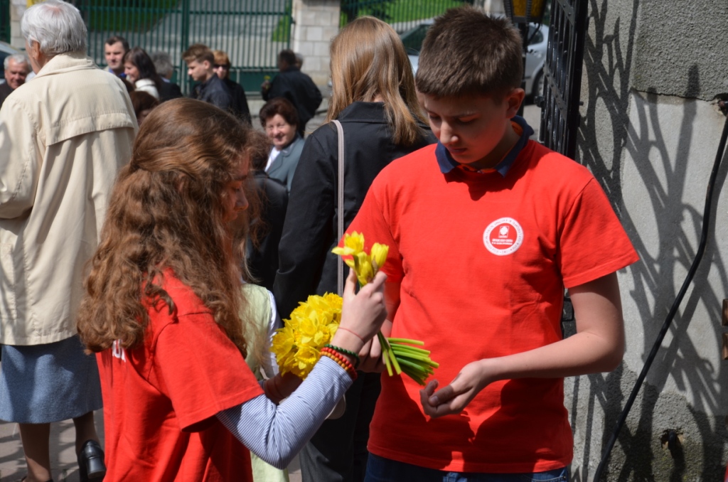 W niedzielę 5 maja b.r. w naszej parafii wolontariusze Szkolnego Koła Caritas kwestowali na rzecz Hospicjum im. Bł. Bernardyny Jabłońskiej w Miechowie. Darczyńcą wolontariusze ofiarowywali żywe żonkile oraz pamiątkowe naklejki. Akcja ta zorganizowana była w naszej parafii po raz trzeci. Podczas tegorocznej zbiórki zebrano kwotę 5771,36 zł, na potrzeby Hospicjum. Wszystkim zaangażowanym w przygotowanie tej akcji słowa podziękowania przekazała Siostra Kinga – Kierownik Hospicjum obecna w tym dniu w naszym Kościele.