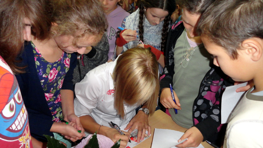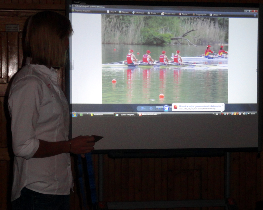 Pani Kamila opowiadała nam o swoich przygotowaniach do Mistrzostw Europy i Świata, codziennych treningach, zmaganiach z bólem i obowiązkami szkolnymi. Zaimponowała nam postawa pani Kamili, która oprócz trenowania wioślarstwa, także studiuje. Pani Kamila podkreślała, iż sport to dla niej życiowa pasja, która motywuje ją do pracy i dalszego wysiłku.