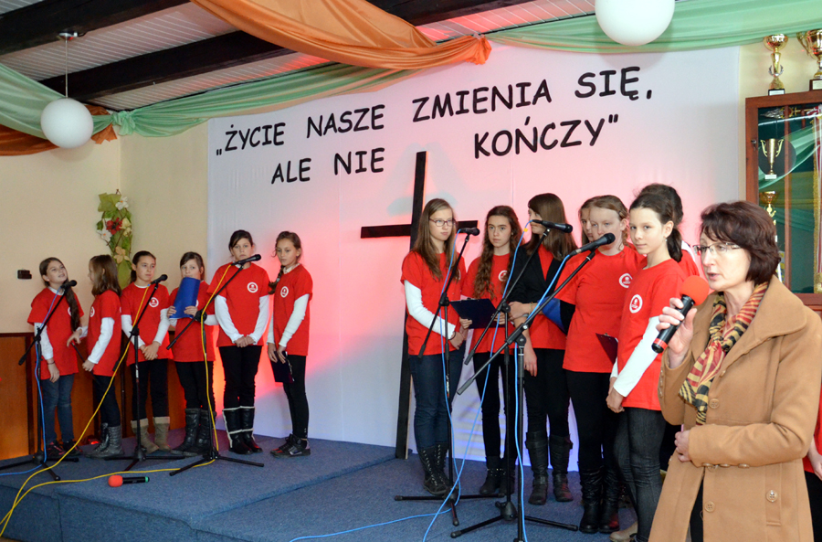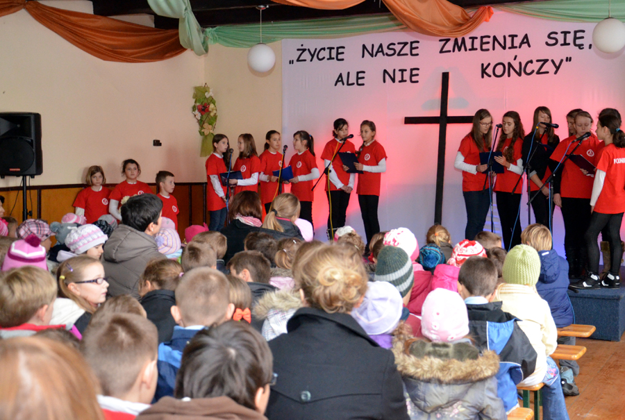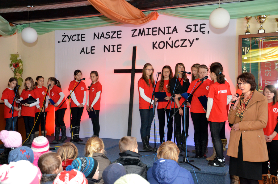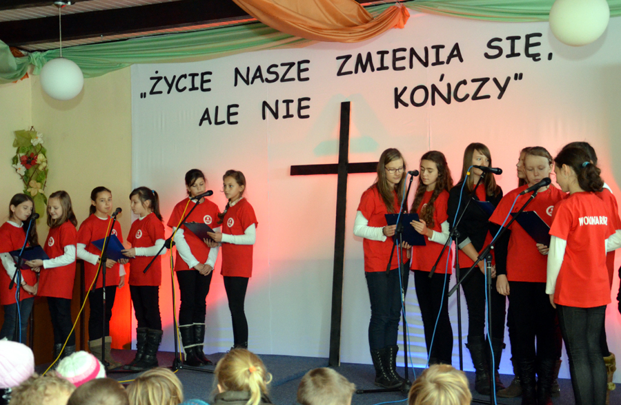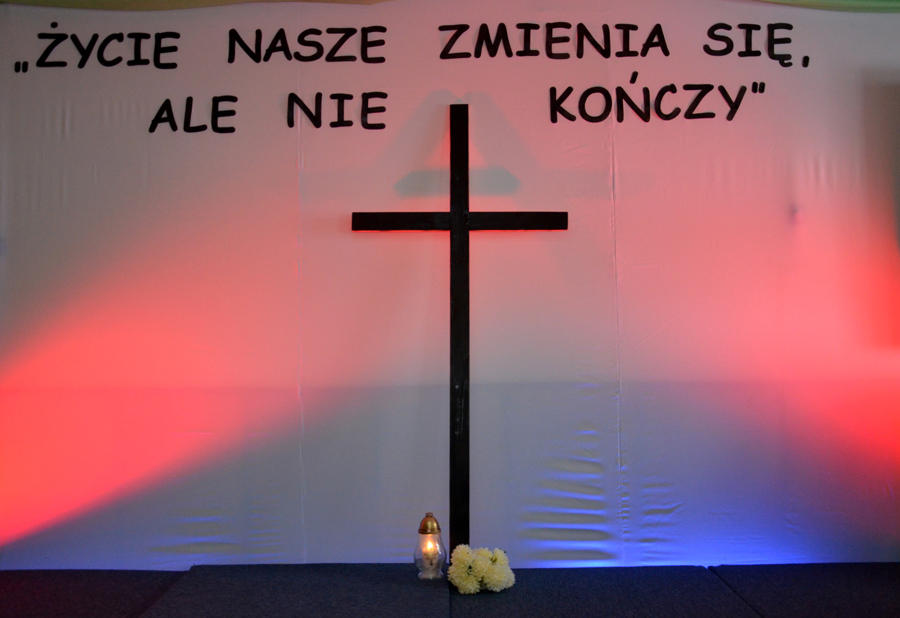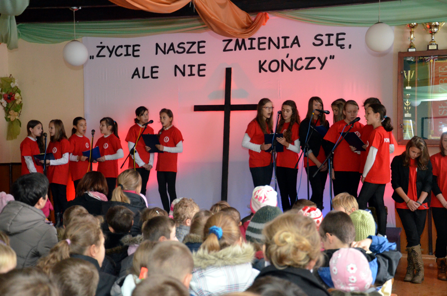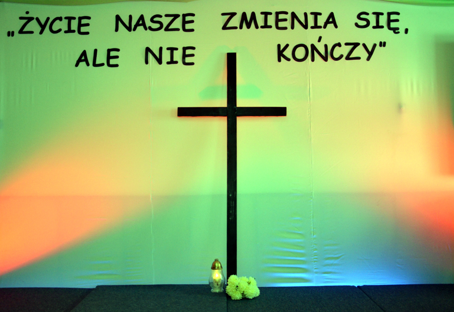 „Życie się nie kończy, lecz zmienia”. To właśnie te słowa patronowały dzisiejszej uroczystości z okazji dnia Wszystkich Świętych. Apel odbył się w remizie pod czujnym okiem ks. Dominika Kostona, który nie tylko dbał o oprawę techniczną, ale również sprawdzał się w roli fotoreportera. Uroczystość nie mogłaby się odbyć bez pani Renaty Jagiełki oraz pani Urszuli Kubik, które wraz z członkami chóru Primavera i wolontariuszami Szkolnego Koła Caritas im. br. Serafina-Józefa Zwolińskiego przygotowały program artystyczny. Widzami byli nie tylko uczniowie i nauczyciele naszej szkoły, ale również zaproszeni goście. Były cytaty, wiersze oraz piękne piosenki, które dostarczyły nam wielu wzruszeń. Na koniec pan dyrektor, Michał Znamirowski powiedział kilka wzruszających zdań, które dopełniły ten czas spędzony na refleksjach i przemyśleniach związanych z tym szczególnym dniem, dniem ciszy, dniem wspomnień, dniem pamięci.