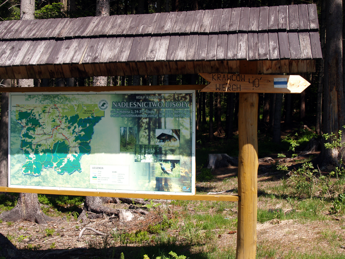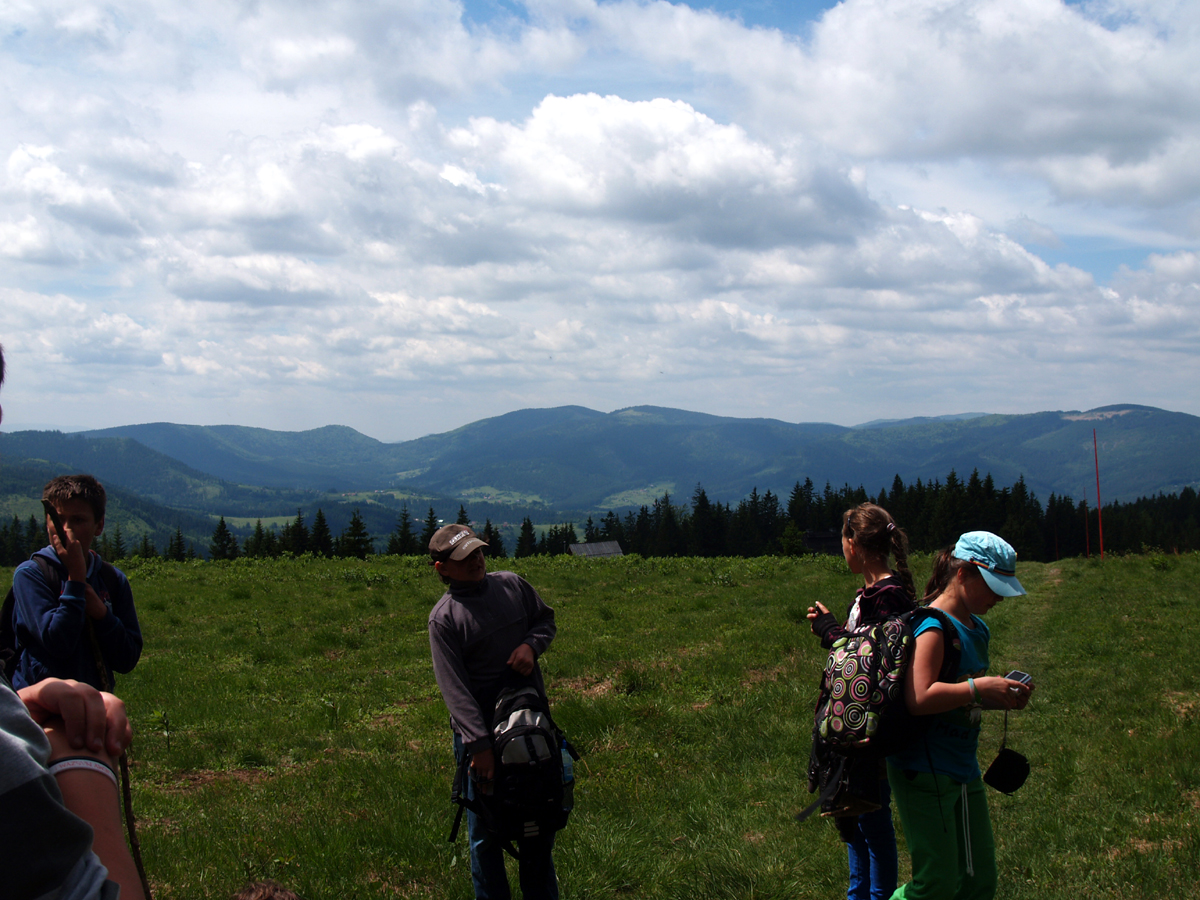 31 maja wyruszyliśmy na szlak w Beskid Żywiecki. Korzystając z ogólnopolskiej akcji „Poznaj Beskidy”, dzięki przewodnikowi Radosławowi Szczepankowi zyskaliśmy wiele ciekawych informacji o miejscowościach na trasie Żywiec – Glinka, oraz o Beskidzie Żywieckim. Łagodną ale piękną trasą z przełęczy Glinka wyruszyliśmy na szlak wiodący przez Jaworzynę na Krawców Wierch. Na Polanie Krawców Wierch (1080m n.p.m.) urzekły nas wspaniałe widoki z panoramą części Tatr włącznie. Słoneczna pogoda i doskonała widoczność sprawiły, że czuliśmy się jak w niebie. Legendy o zbójnikach i dawnych ludziach opowiadane przez przewodnika na długo zapadną nam w pamięci. Tu też weszliśmy na szlak papieski otwarty w 2006 roku. Jest on częścią 52 kilometrowej trasy turystycznej biegnącej śladami górskich wędrówek kardynała Karola Wojtyły a ten w rejonie Rajczy i Ujsoł liczy ok. 7 kilometrów. My przeszliśmy tylko niewielki jego odcinek. Pan Radosław opowiedział nam też o pobytach tu kardynała Wojtyły ze studentami i przyjaciółmi. Pokazał zagrodę,