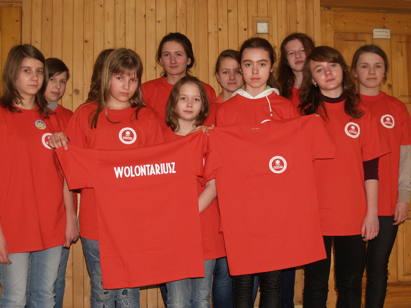 Wolontariusze Szkolnego Koła Caritas w Poskwitowie wraz z Opiekunem .