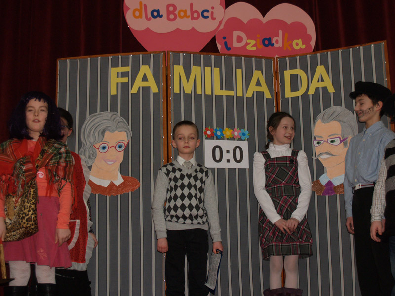 22 stycznia 2011 r. dzieci z oddziału przedszkolnego oraz z kl. I, II i III gościły w szkole Babcie i Dziadków z okazji ich święta. Wśród licznie zgromadzonych gości były też Prababcie i Pradziadkowie. Wnuczęta z wielkim przejęciem recytowały wiersze, śpiewały piosenki, prezentowały układy taneczne i bajkowe spektakle. Odbyło się też specjalne wydanie Familiady. Były również prezenty wykonane własnoręcznie przez dzieci, najserdeczniejsze życzenia dla ukochanych Babć i Dziadków i … najgłośniej na świecie odśpiewane „Sto lat”. Po części oficjalnej, przy herbacie i smakołykach, był czas na rozmowy i wspomnienia. Przybyli nie kryli wzruszenia i dumy ze wspaniałego występu wnuków. Wiele ciepłych słów uznania usłyszały od Seniorów wychowawczynie: Elżbieta Szopa, Joanna Kowalska, Marzena Kluza, Teresa Orda, Iwona Chwierut, które już od wielu lat organizują to niezwykle wzruszające międzypokoleniowe spotkanie.