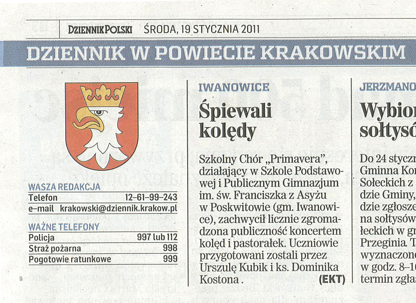 Wieczorem w niedzielę (16 stycznia br.) w kościele parafialnym pod wezwaniem św. Trójcy w Iwanowicach odbył się niezwykle urokliwy koncert kolęd i pastorałek Szkolnego Chóru „Primavera” (Szkoła Podstawowa i Publiczne Gimnazjum im. św. Franciszka z Asyżu w Poskwitowie). Przygotowania do koncertu trwały wiele tygodni, ale owoce tej pracy zostały docenione przez bardzo licznie zgromadzoną publiczność.
