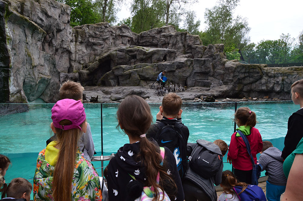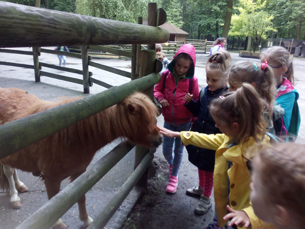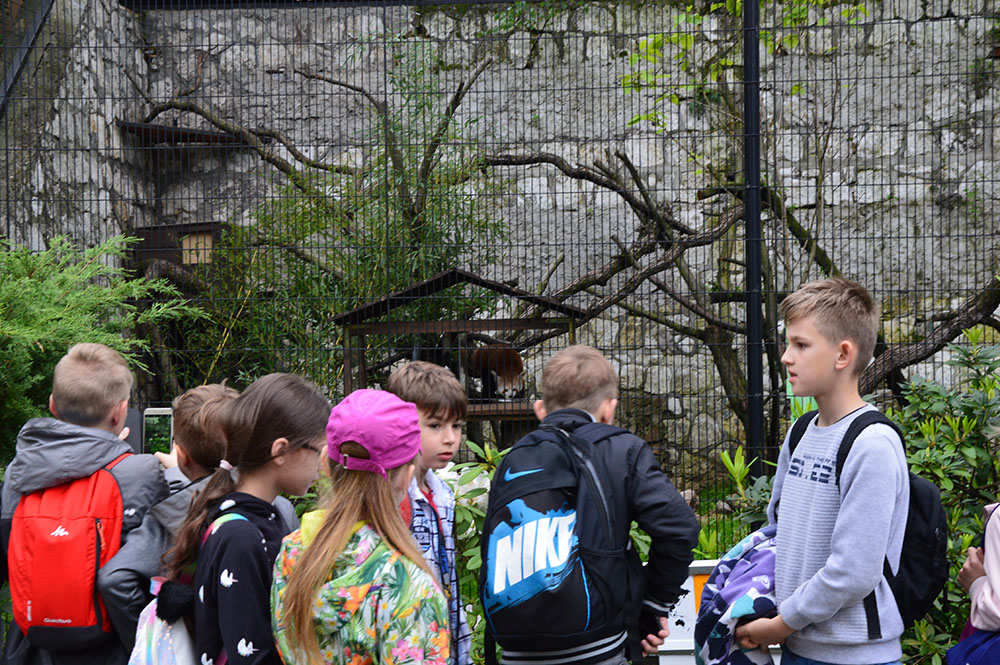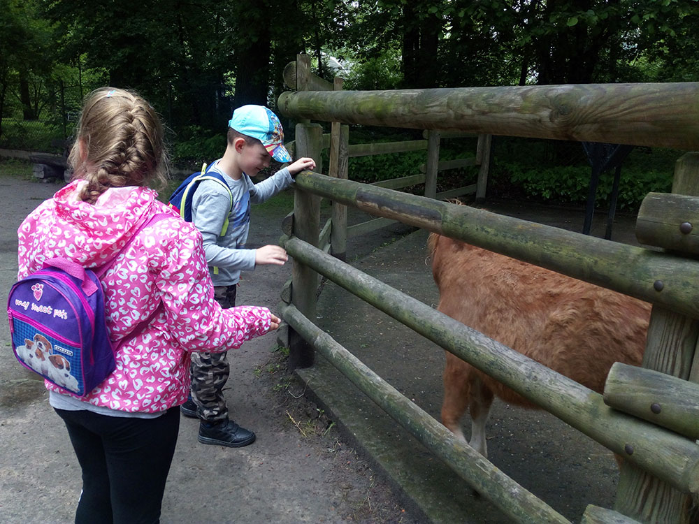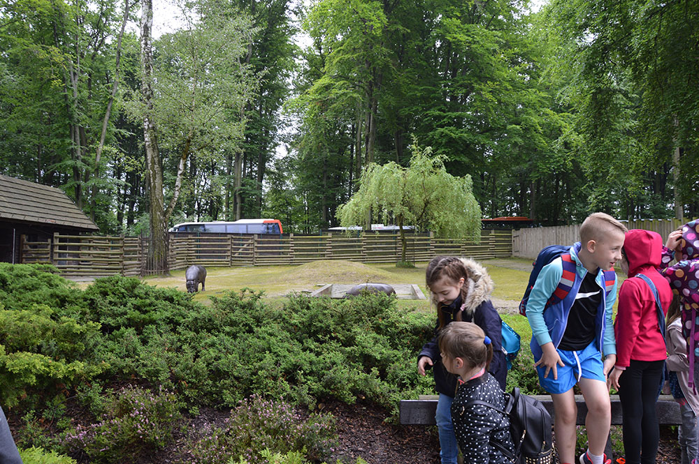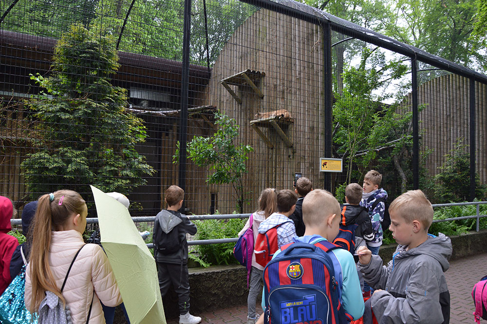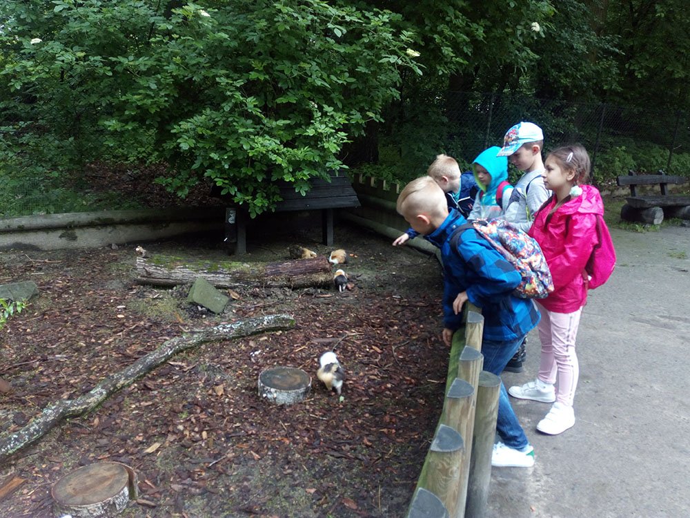 28 maja 2019 r. wspólnie z zerówką, klasą I i II pojechaliśmy na wycieczkę do ZOO. Oglądaliśmy różne zwierzęta, a niektóre z nich można było nawet pogłaskać i nakarmić marchewką np. alpaki. Podczas oglądania żyraf zaczął padać deszcz, więc schroniliśmy się pod daszkiem, gdzie można było kupić lody. Widzieliśmy malutkiego tygrysa – wyglądał słodko i wszyscy się nim zachwycali. Najbardziej podobały nam się: świnki morskie, rysie, mały tygrys, flamingi i foki.