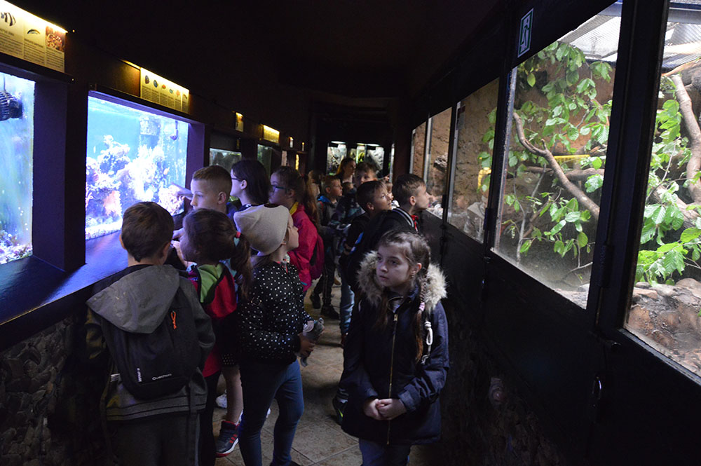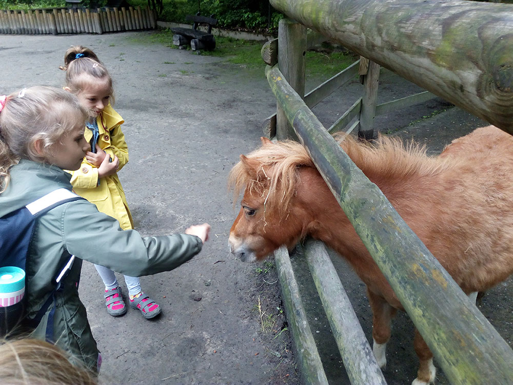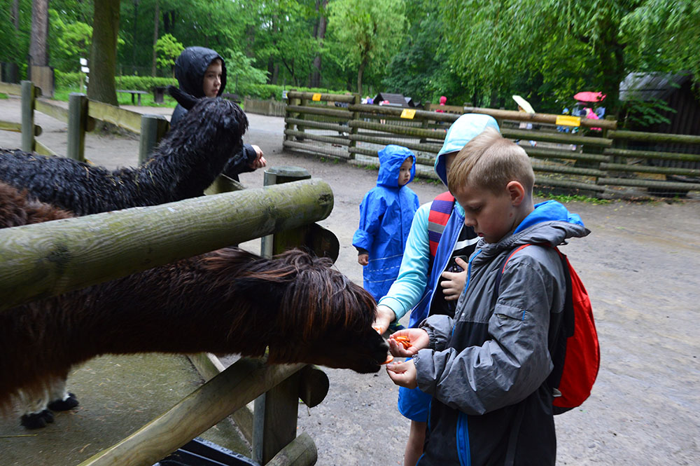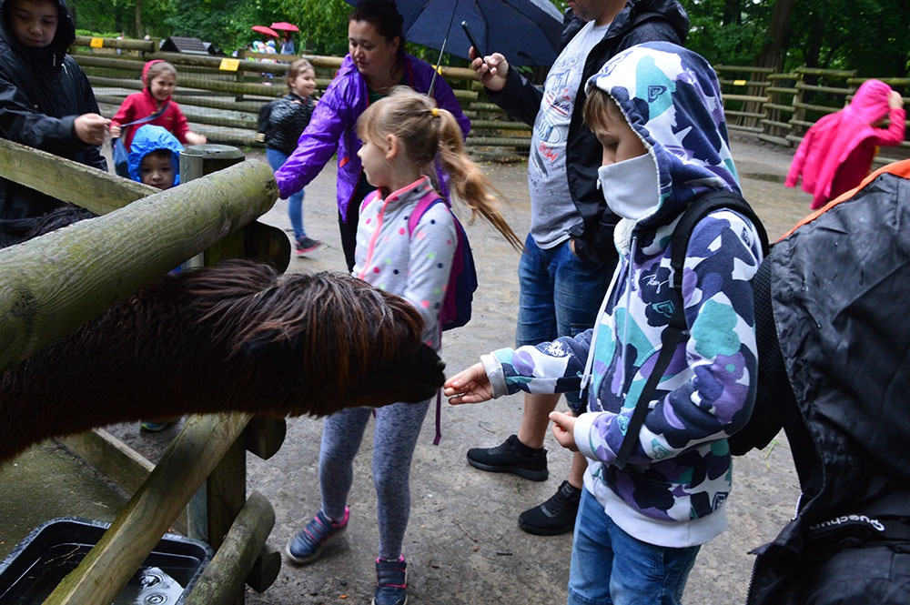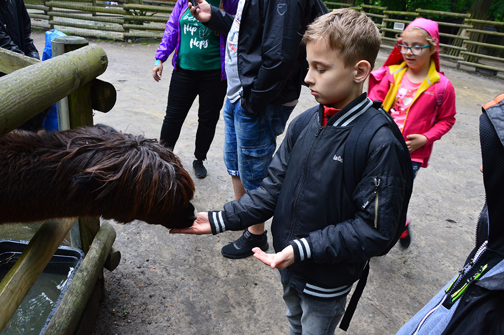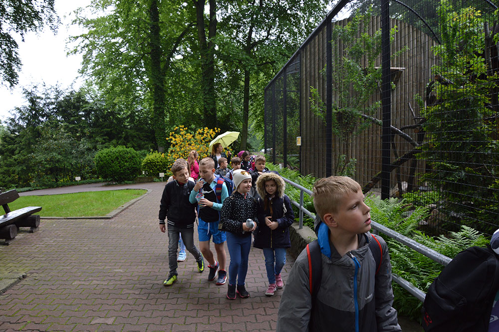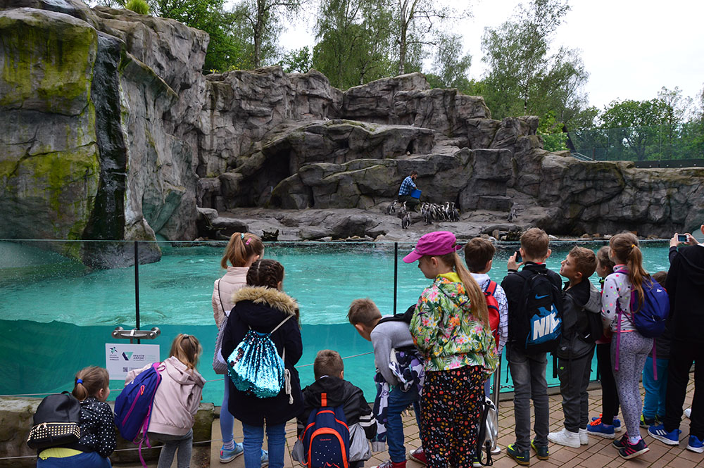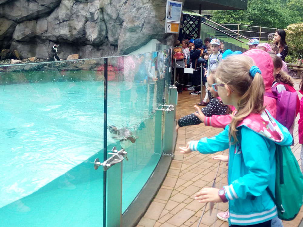 28 maja 2019 r. wspólnie z zerówką, klasą I i II pojechaliśmy na wycieczkę do ZOO. Oglądaliśmy różne zwierzęta, a niektóre z nich można było nawet pogłaskać i nakarmić marchewką np. alpaki. Podczas oglądania żyraf zaczął padać deszcz, więc schroniliśmy się pod daszkiem, gdzie można było kupić lody. Widzieliśmy malutkiego tygrysa – wyglądał słodko i wszyscy się nim zachwycali. Najbardziej podobały nam się: świnki morskie, rysie, mały tygrys, flamingi i foki.