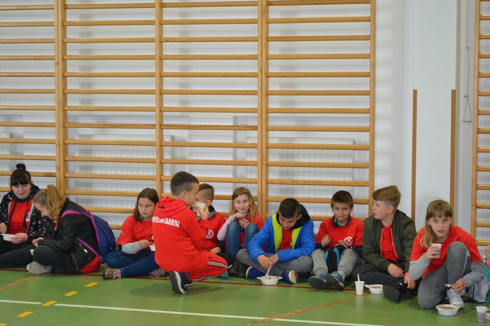 Wprowadzenie do drugiej części spotkania dokonał Koordynator Diecezjalnego Centrum Wolontariatu, Damian Zegadło, który podzielił uczestników na trzy zespoły. Każda grupa udała się w inne miejsce. Najmłodszymi uczestnikami zaopiekowali się pracownicy Centrum Kultury z Piekoszowa wraz z harcerzami. Czekała ich gra terenowa na placu w okolicy kościoła, z zadaniami dotyczącymi gminy, pomocy niepełnosprawnym i wolontariatu. Grupa średnia wiekowo udała się do Gminnego Ośrodka Kultury, by zobaczyć spektakl cieni przygotowany przez podopiecznych Środowiskowego Domu Samopomocy w Piekoszowie. Następnie uczniowie odwiedzili ich placówkę i wzięli udział w krótkim warsztacie. Najstarsza grupa została zaproszona na spotkanie w Domu dla Niepełnosprawnych, gdzie specyfikę miejsca przybliżył dyrektor placówki, ks. Jan Jagiełka. Młodzi wysłuchali także świadectwa osoby niepełnosprawnej. Nasza grupa uczestniczyła w grze terenowej, która była świetną zabawą dla wszystkich.