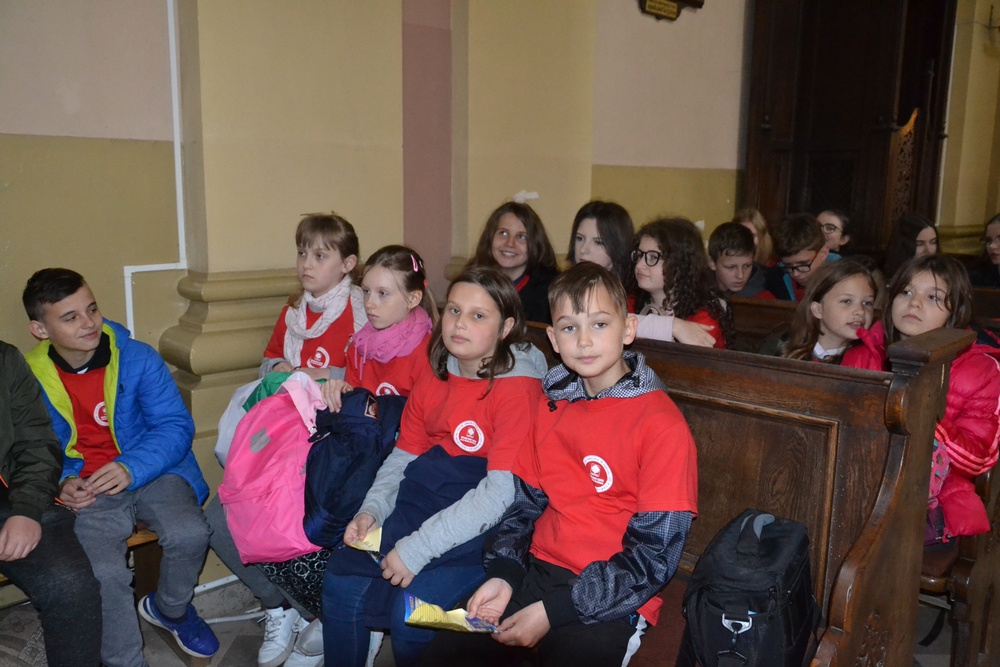 Spotkanie rozpoczęło się w kościele w Piekoszowie, gdzie zebranych przywitał kustosz miejscowego sanktuarium. Przybliżył on historię świątyni i cudownego obrazu. Następnie głos zabrali Świętokrzyski Kurator Oświaty, Kazimierz Mądzik oraz Wójt Gminy Piekoszów. O wartości wychowawczej wolontariatu przypomniał z-ca dyrektora Caritas Diecezji Kieleckiej ks. Krzysztof Banasik i podziękował opiekunom i dyrekcji szkół, w których działają SKC.