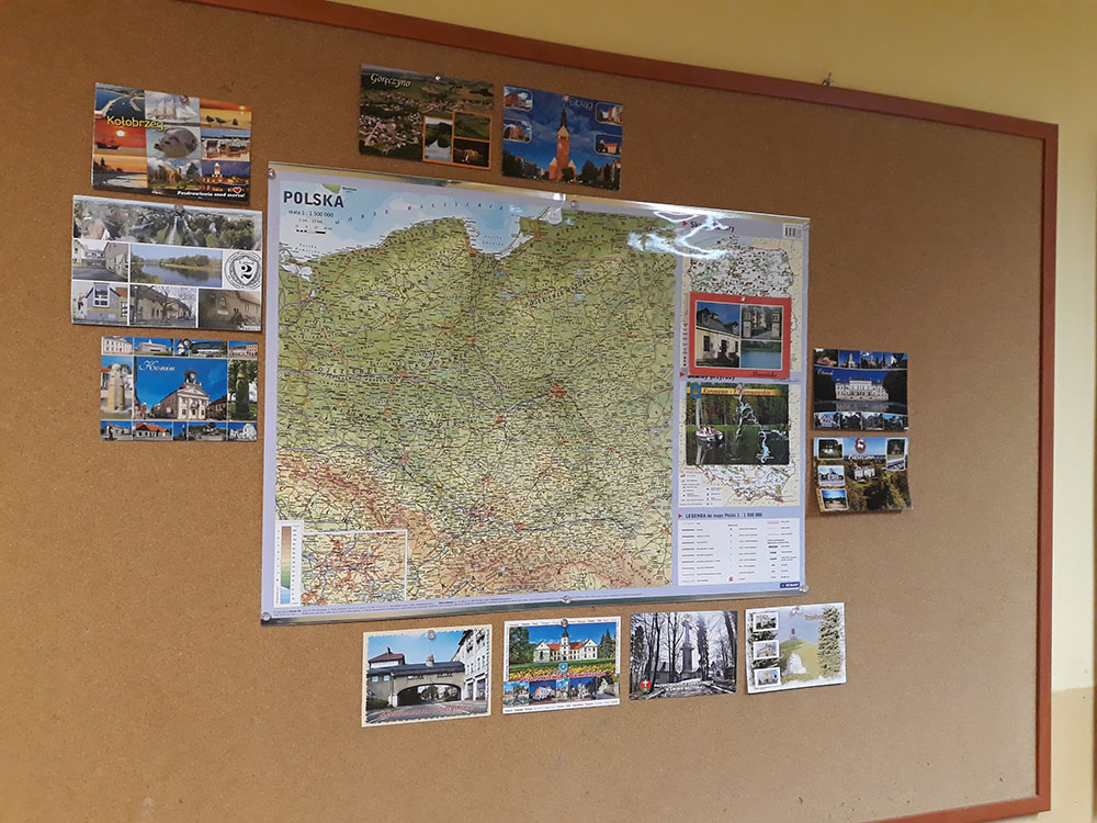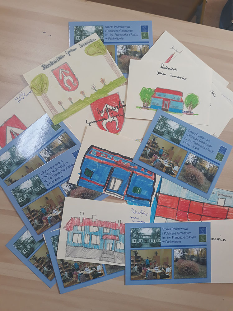 Uczniowie klasy III wzięli udział w akcji Wielka Mapa Polski. Akcja ta polegała na wymianie pocztówkowej pomiędzy szkołami w całej Polsce. Każda klasa, która zgłosiła swój udział dostawała listę adresów, na które należało przesłać pocztówki. Wymiana pocztówek nie tylko sprawiła radość uczniom, ale posiadała również walor edukacyjny – praca z mapą, prawidłowe pisanie i adresowanie pocztówek, nawiązywanie kontaktów z innymi szkołami, a także poznawanie charakterystycznych lub nowych miejsc naszego kraju. Ponad to postanowiliśmy, że część pocztówek wykonamy samodzielnie. Rysunki wykonane przez uczniów przedstawiały naszą szkołę lub herb Gminy Iwanowice. Tak przygotowane pocztówki poprawnie zaadresowaliśmy i wysłaliśmy do kolegów i koleżanek z innych szkół. Moment oczekiwania na pocztówki z włączonych do akcji szkół był bardzo emocjonujący. Po odebraniu kolejno przychodzących kartek z różnych części Polski, uczniowie natychmiast odnajdywali dane miejsce na mapie by dowiedzieć się z jakiego rejonu do nas dotarły.