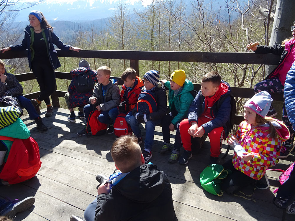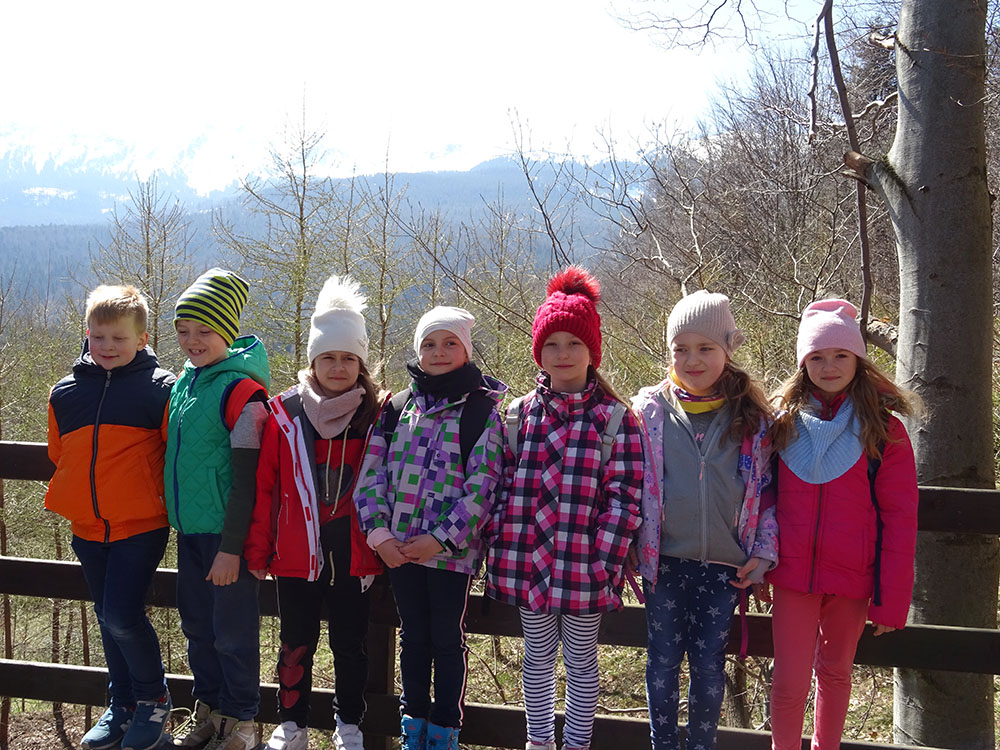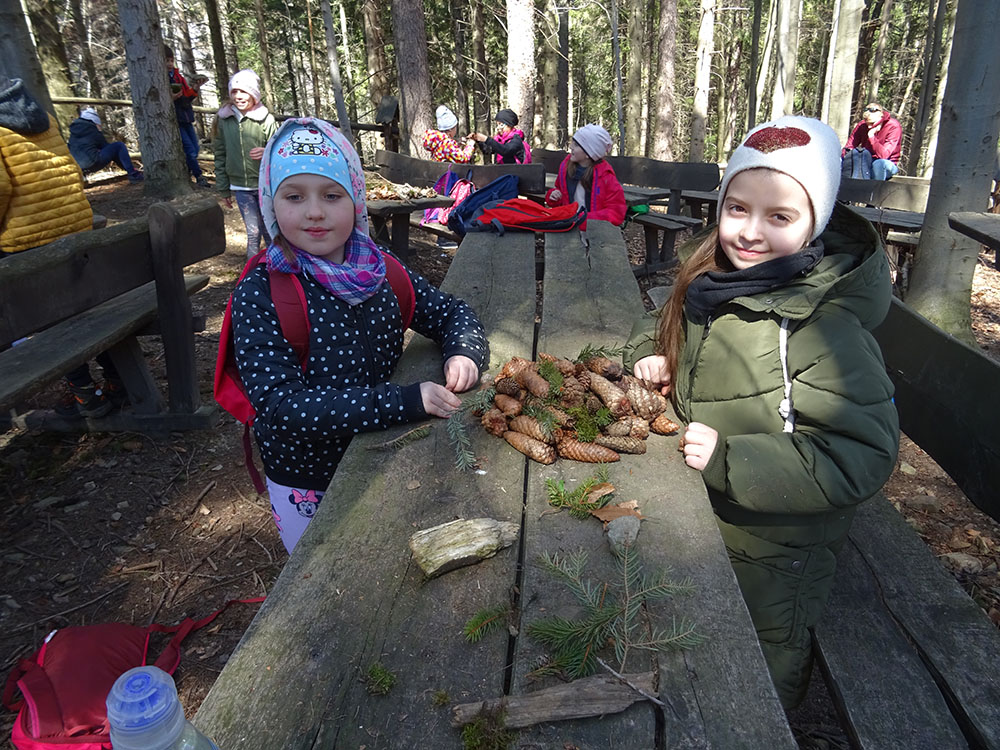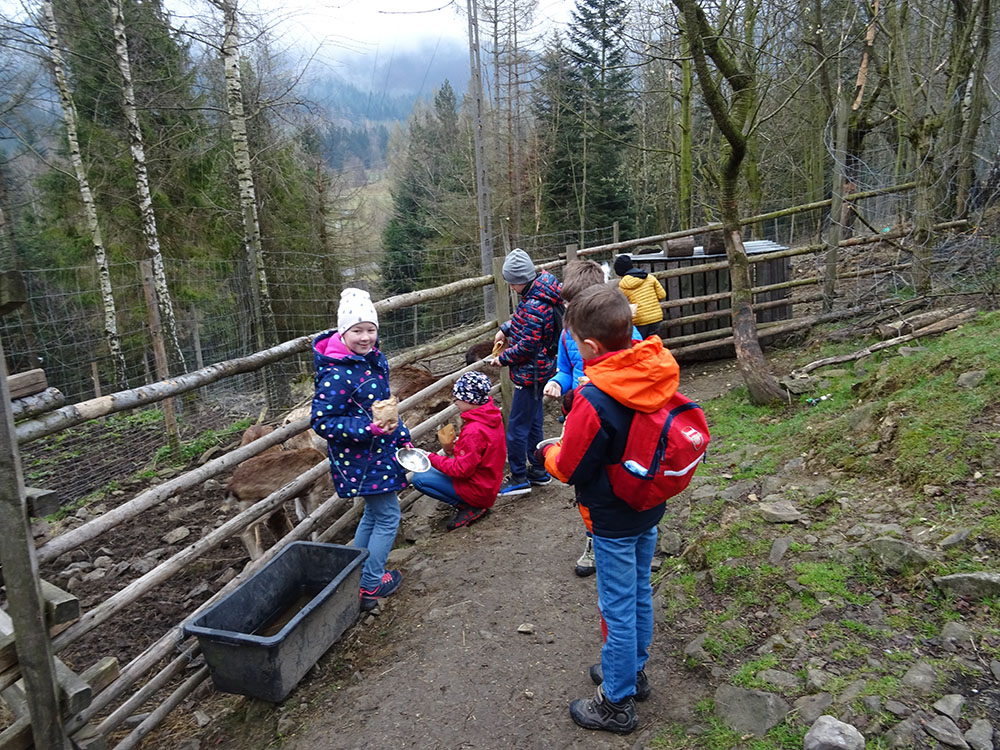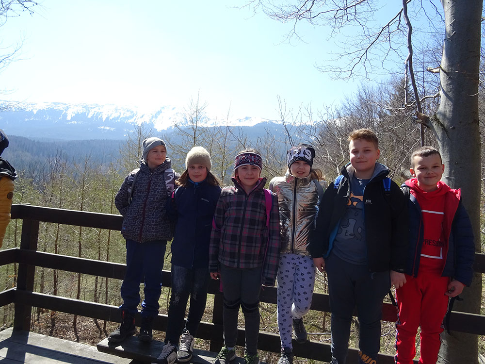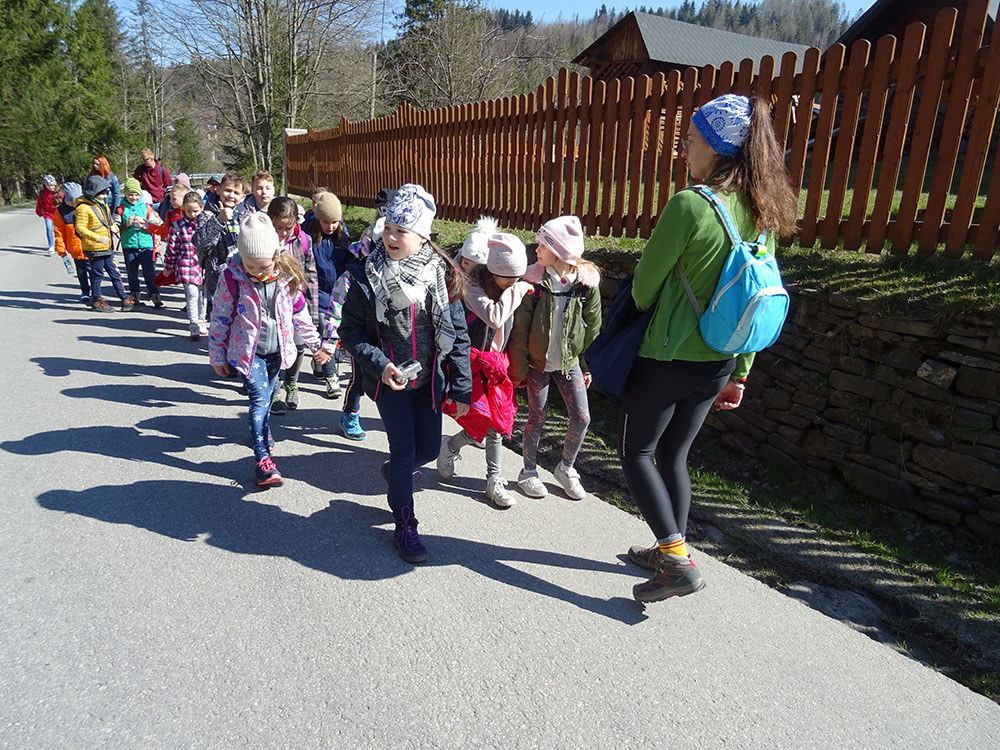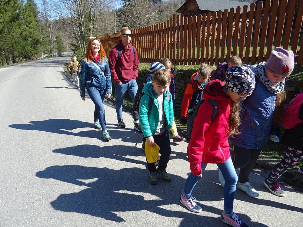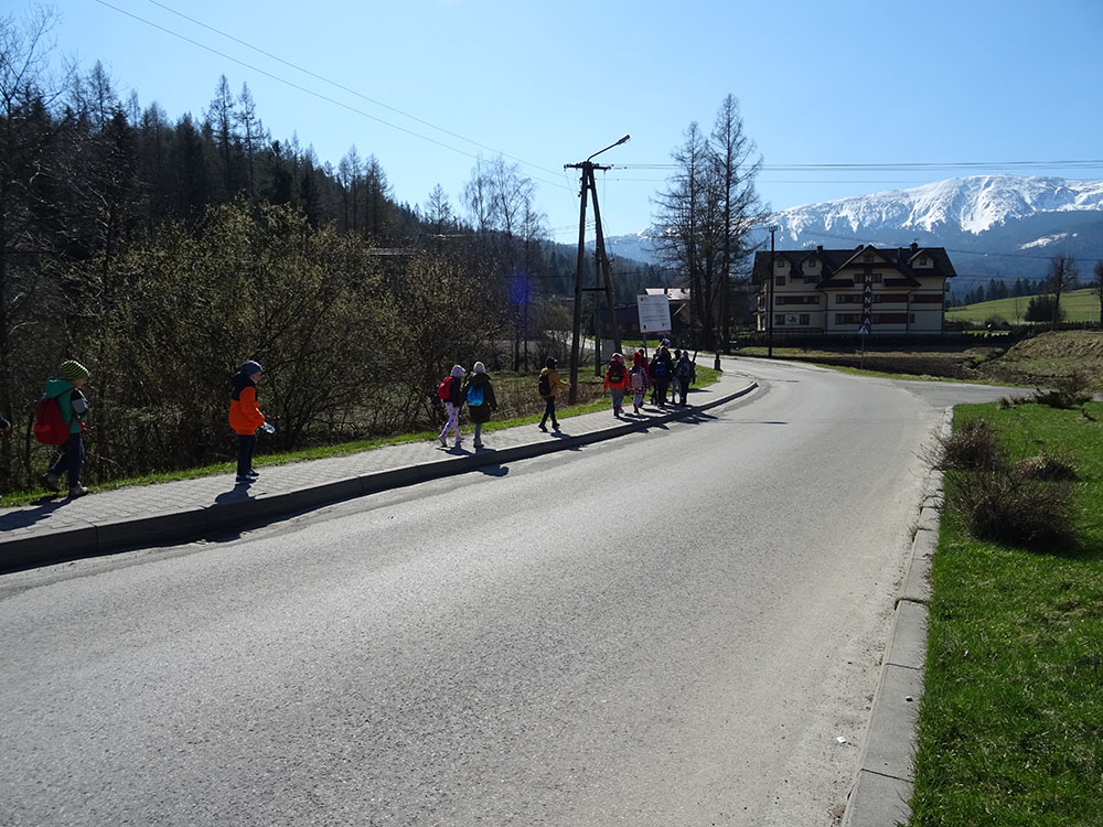Dnia 15 kwietnia 2019 r. punktualnie o godzinie 8.00 przed szkołą zebrała się 33 – osobowa grupa uczniów z klas I – IV. Ten dzień był długo wyczekiwany przez wszystkich uczestników wyjazdu na trzydniową wycieczkę do Zawoi. Pierwszym punktem programu było wyjście na Przysłop i znajdującą się tam wieżę widokową, z której można podziwiać panoramę na Beskid Śląski i Beskid Żywiecki. Po zejściu uczniowie mogli nakarmić i pogłaskać zwierzęta w sąsiadującej zagrodzie obok wieży. Następnie udaliśmy się do ośrodka, gdzie uczniowie zostali przydzieleni do właściwych pokoi, zanieśli tam swoje walizki, rozpakowali je i nie mogli doczekać się atrakcji. Kolejnym punktem programu były zajęcia z szycia. Niektórzy po raz pierwszy trzymali igłę w dłoni. Pomimo to, świetnie poradzili sobie z tym zadaniem i owieczki z filcu wyszły przepięknie! Każdy swoje dzieło zabrał na pamiątkę do domu. Pogoda w tym dniu sprzyjała więc przed kolacją udaliśmy się na zabawy wokół ośrodka – wielbiciele piłki nożnej mogli rozegrać mecz, a pozostali chętnie pobawili się w berka. Na zakończenie dnia odbyło się spotkanie z miejscowymi góralami, którzy zaprezentowali góralskie stroje, przyśpiewki, ciekawostki, a przede wszystkim góralską gwarę. Pełni wrażeń po całym dniu wszyscy udali się do pokoi na zasłużony odpoczynek.